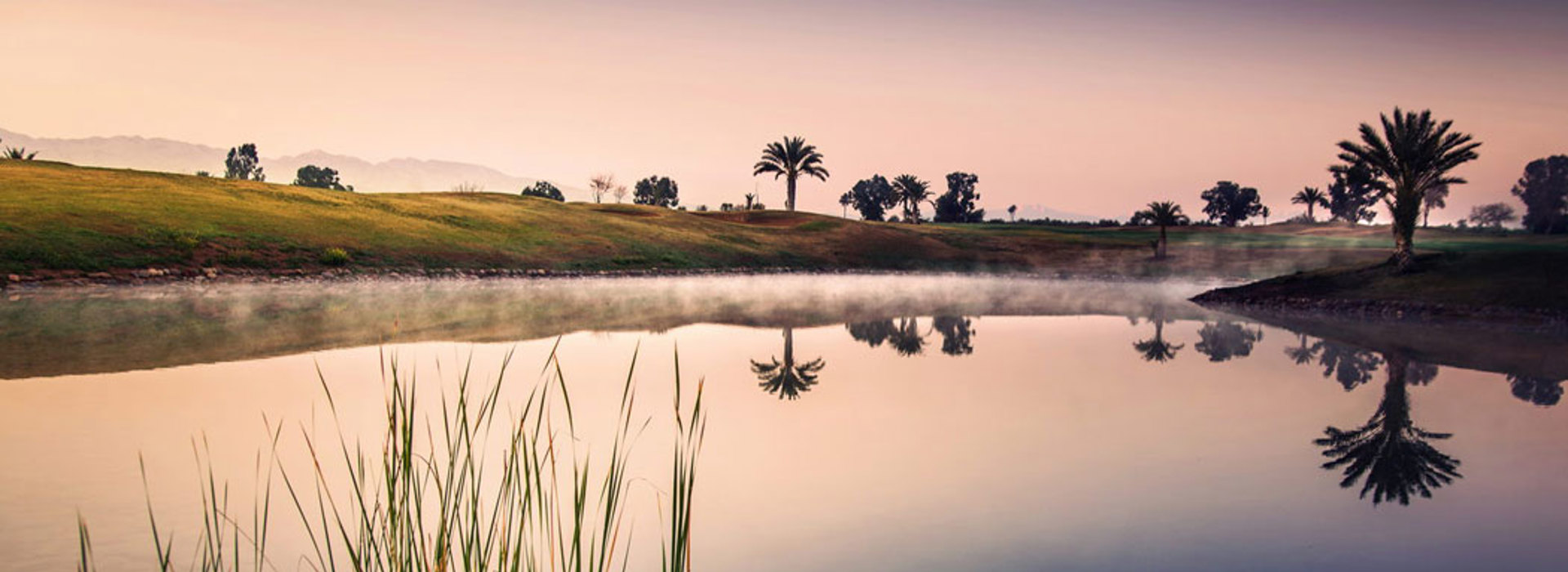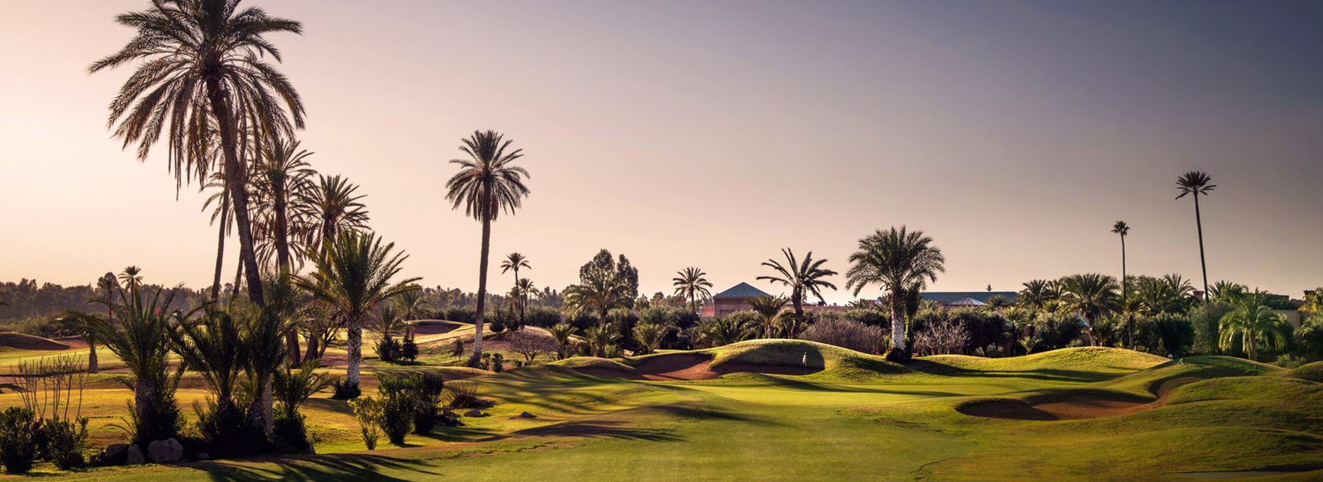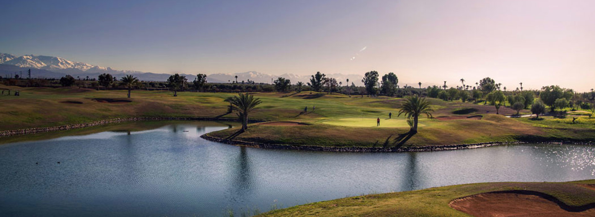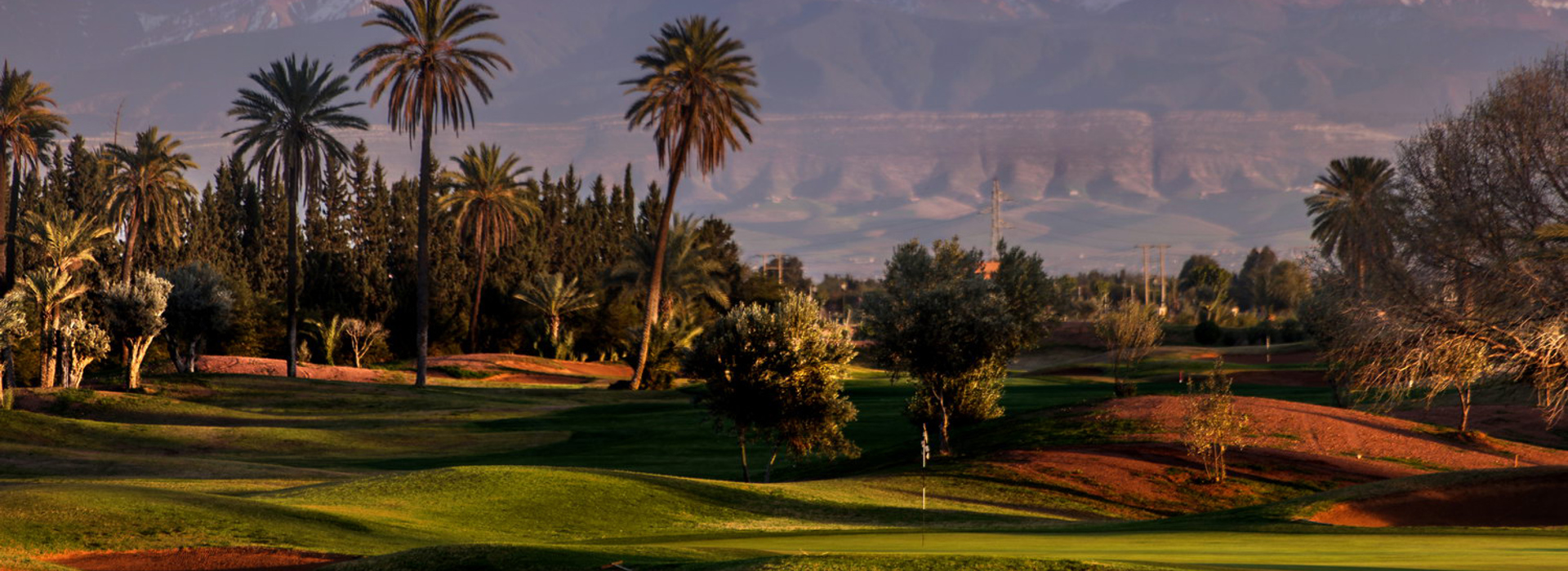 Die Golfanlage vom Amelkis Golf Club befindet sich in Marrakech und bietet spektakuläre Ausblicke auf das schneebedeckte Atlas-Gebirge.