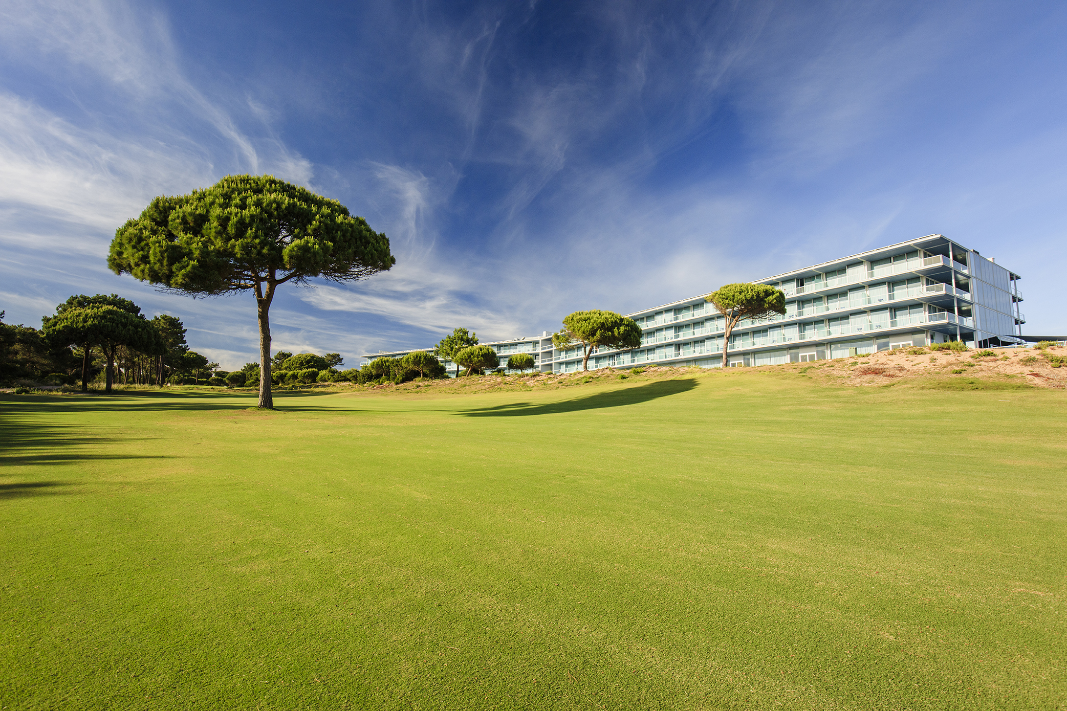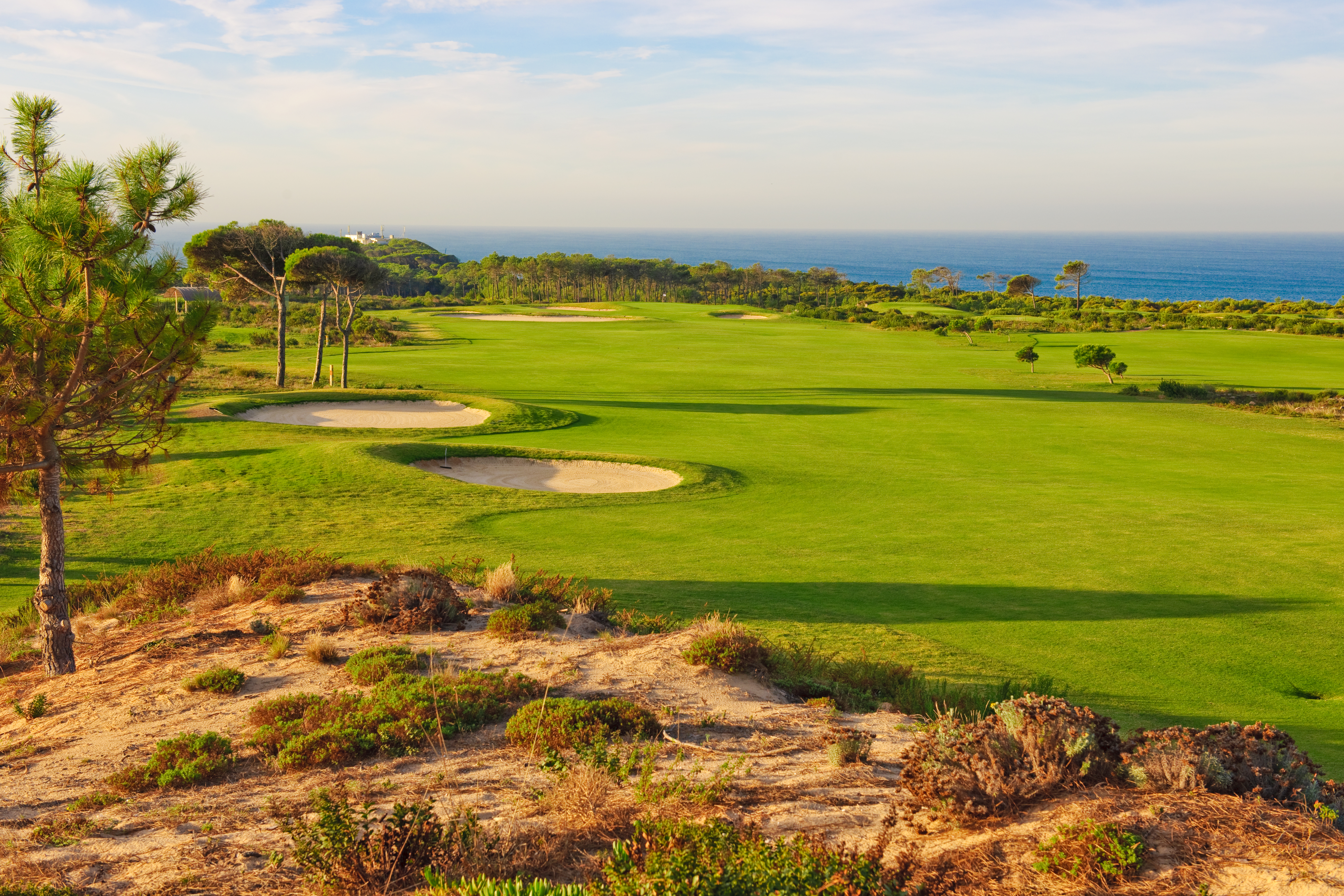 Der Platz von Oitavos Dunes befindet sich direkt an der Atlantikküste, mit Blick auf den Ozean auf der einen und das Sintra-Gebirge auf der anderen Seite.