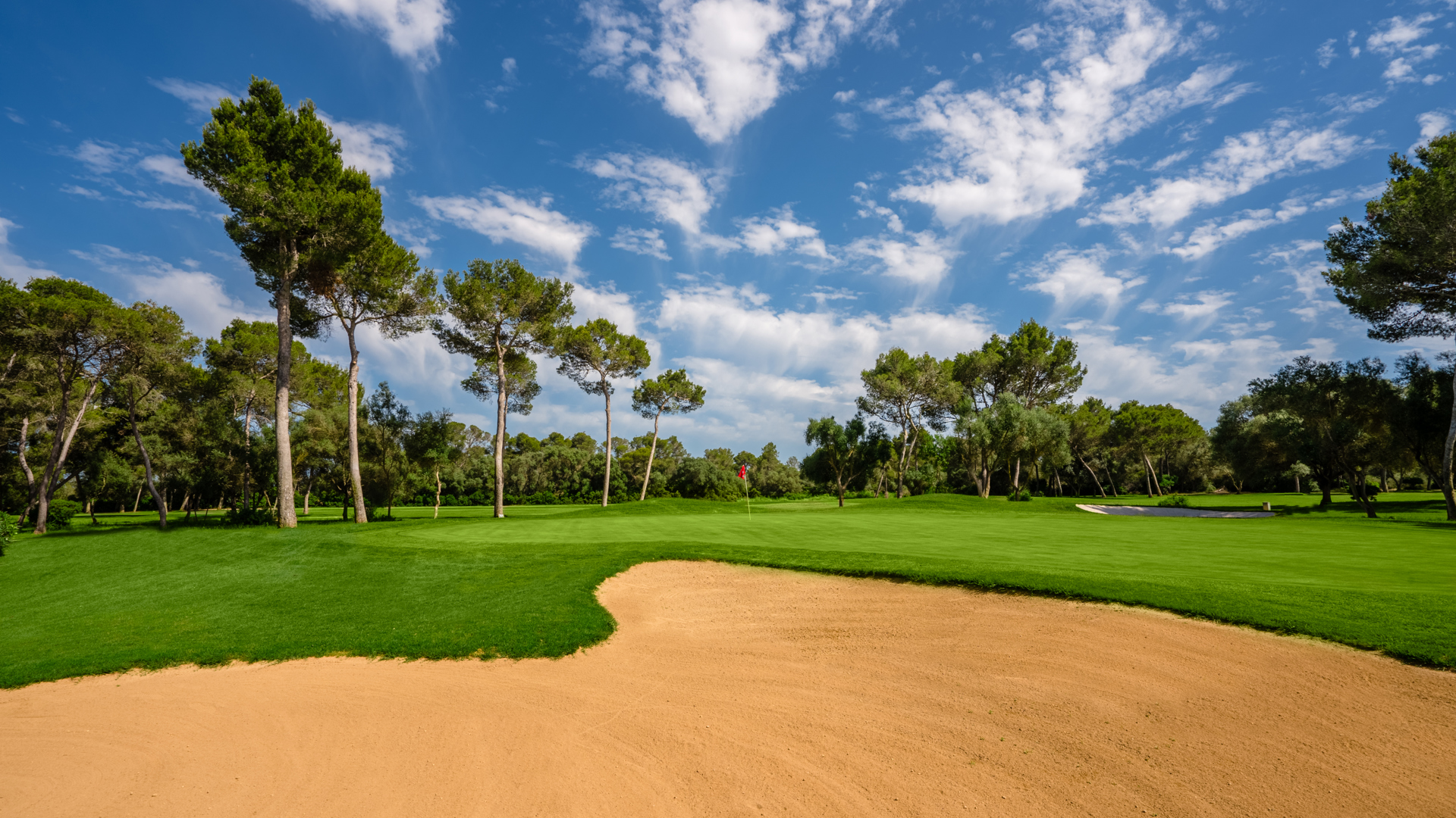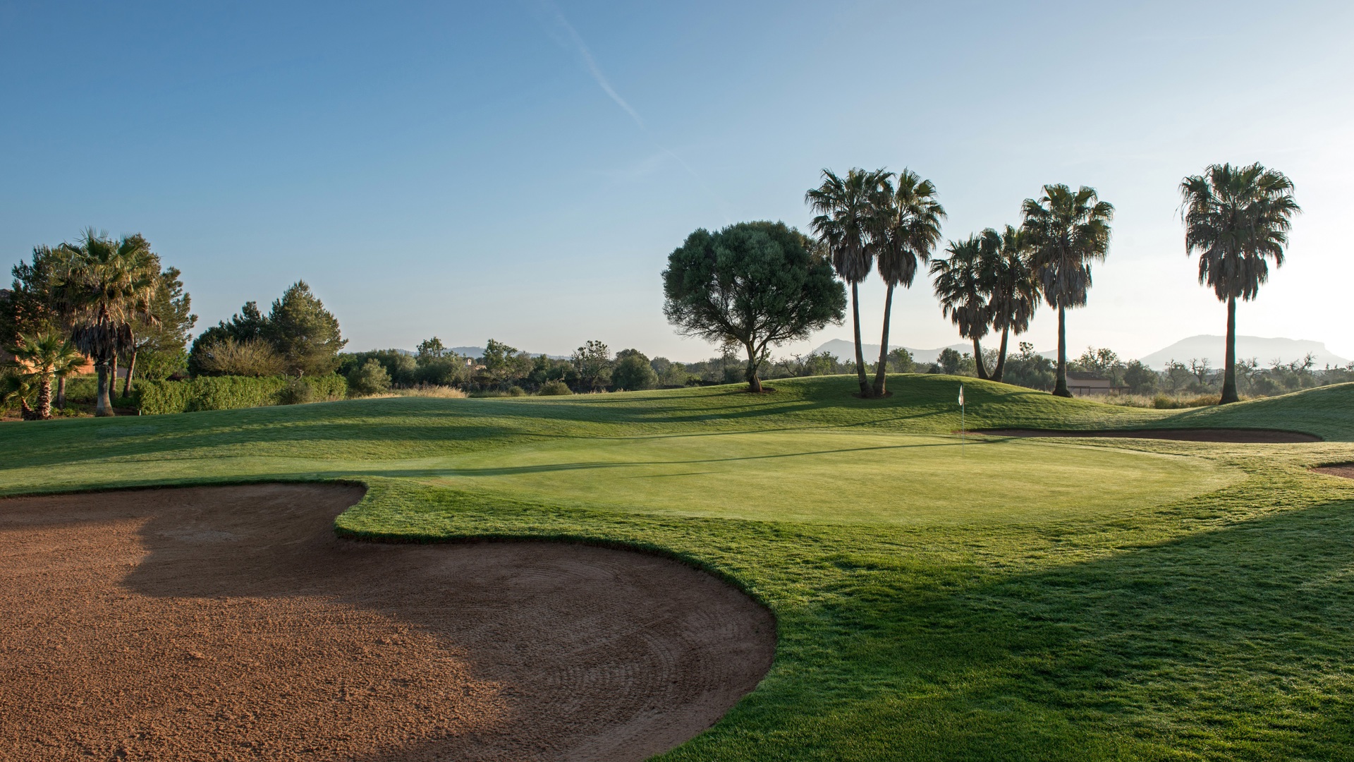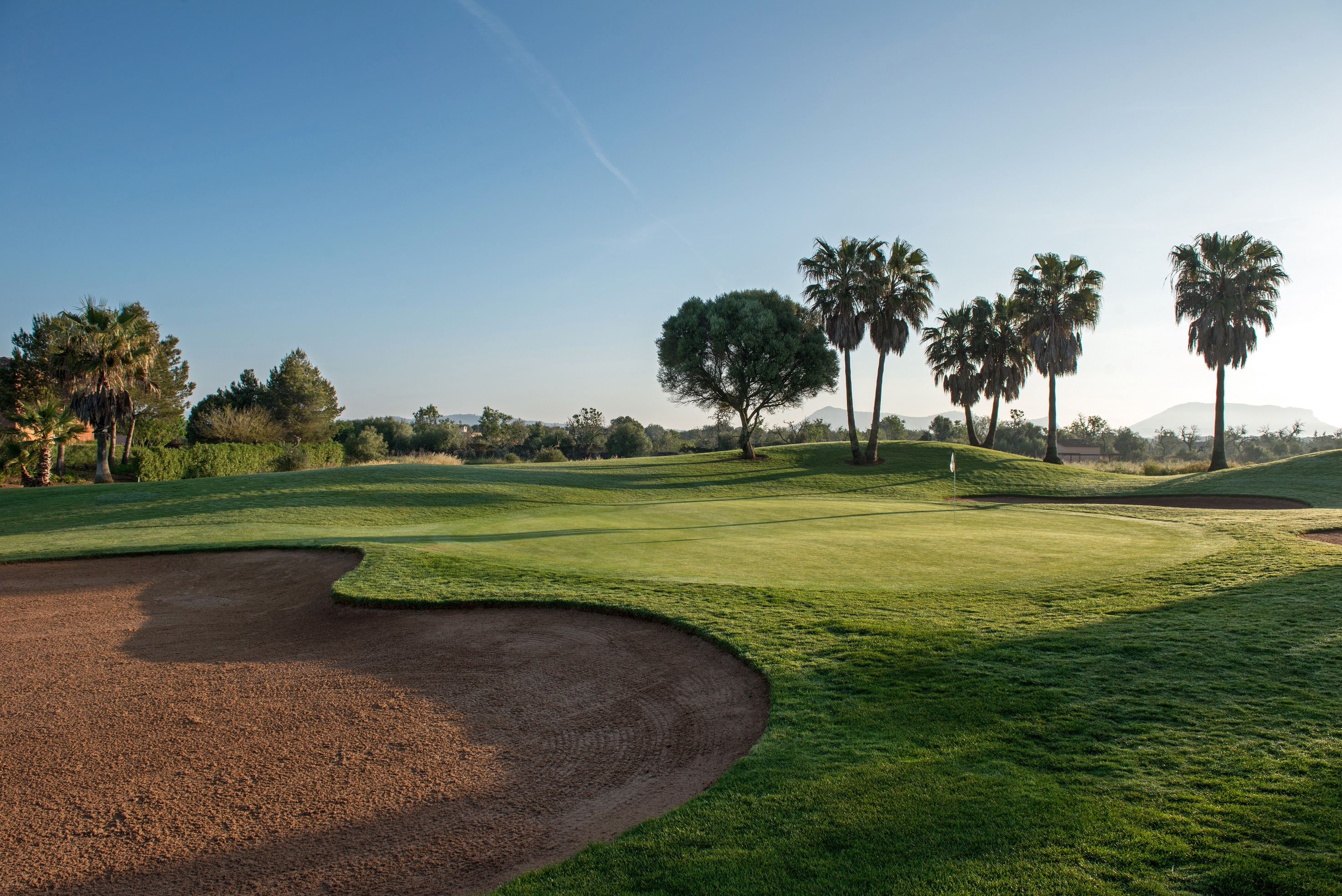 Son Antem Golf liegt bei Llucmajor im Süden Mallorcas, rund 15 Minuten von Palma entfernt, und umfasst zwei Plätze, die in eine wunderbare Naturlandschaft mit mediterranen Feldern, Pinien sowie Oliven- und Mandelbäumen eingefügt sind. Das Gelände ist eben, was das Golfen und die Fortbewegung auf den Plätzen besonders angenehm und bequem macht. Die offene Umgebung verleiht der Anlage einen ruhigen, sonnigen Charakter.