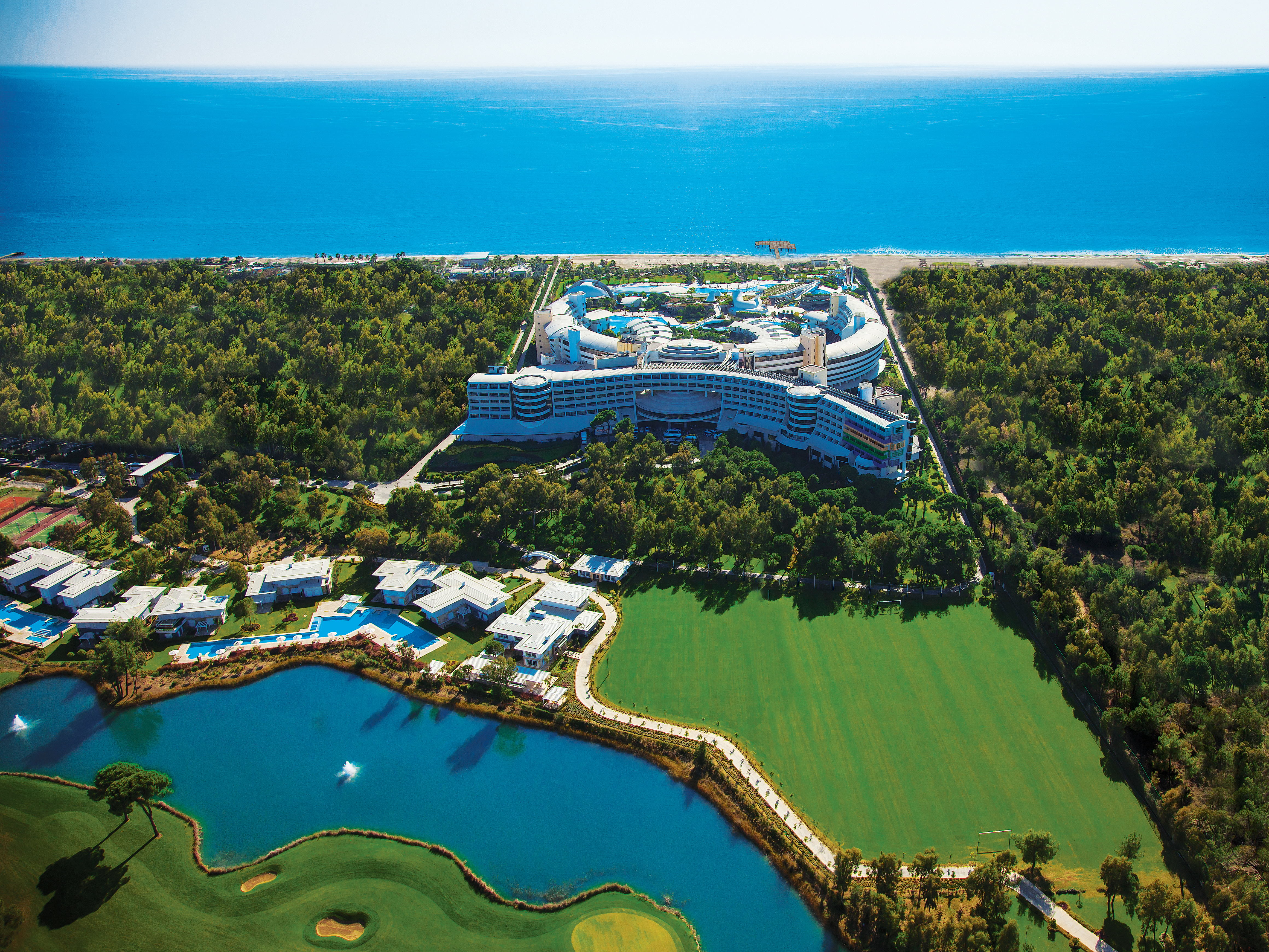 Der Meisterschaftsgolfplatz Cornelia wurde vom berühmten Golfspieler Nick Faldo entwickelt. Der Platz zeichnet sich durch seine Qualität und Harmonie aus. Es werden drei verschiedene 18-Loch-Runden angeboten: Der Prince Platz (6411 m), der Queen Platz (6324 m) und der King Platz (6373 m). Zwischen den Abschlägen und den schönen Fairways befinden sich auch schöne naturbelassene Bereiche. Eine Vielzahl an Seen und etliche Pinienbäume säumen die Fairways und die Grüns. Die Drive-Zonen des Parkland-Platzes sind schmal und werden entweder durch mehrere Bunker oder den dichten Kiefernwald geschützt. Cornelia Golf Club bietet dem Golfer eine wahre Herausforderung in dieser herrlichen Umgebung.