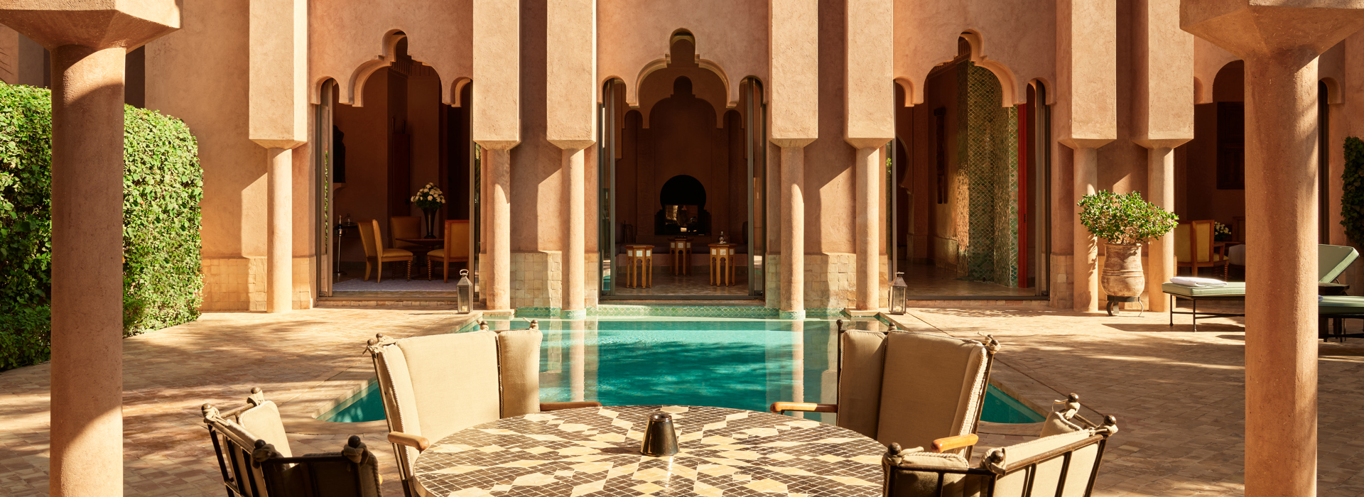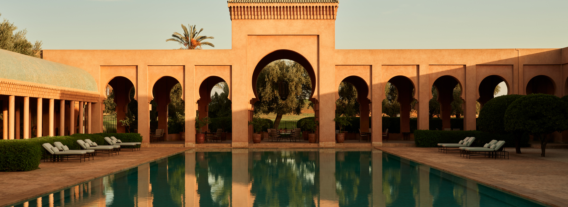 Exklusives Luxus Golfhotel ausserhalb von Marrakech gelegen und in direkter Nachbarschaft zum Golfplatz Amelkis. Das Resort ist eine Oase der Ruhe, im maurischen Stil erbaut und mit schattigen Innenhöfen und klassischen marokkanischen Motiven. Es entstand eine harmonische Kombination der lokalen Kultur und der asiatischen Philosophie der renommierten Amanresorts.