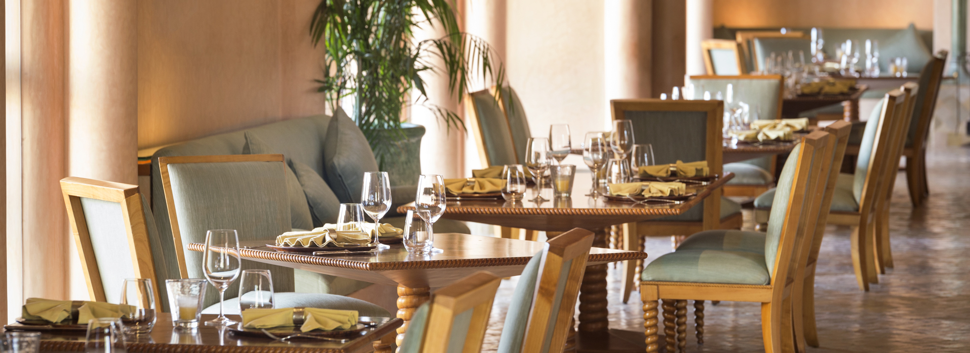 Zwei Restaurants mit marokkanischen, mediterranen und japanischen Spezialitäten, Pool Restaurant, Bar, Lounge, Bibliothek, Boutique.