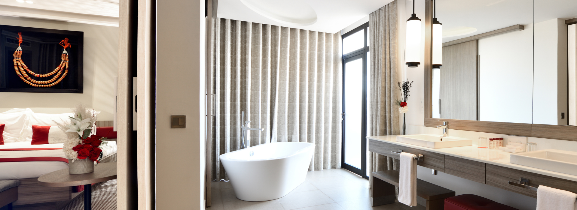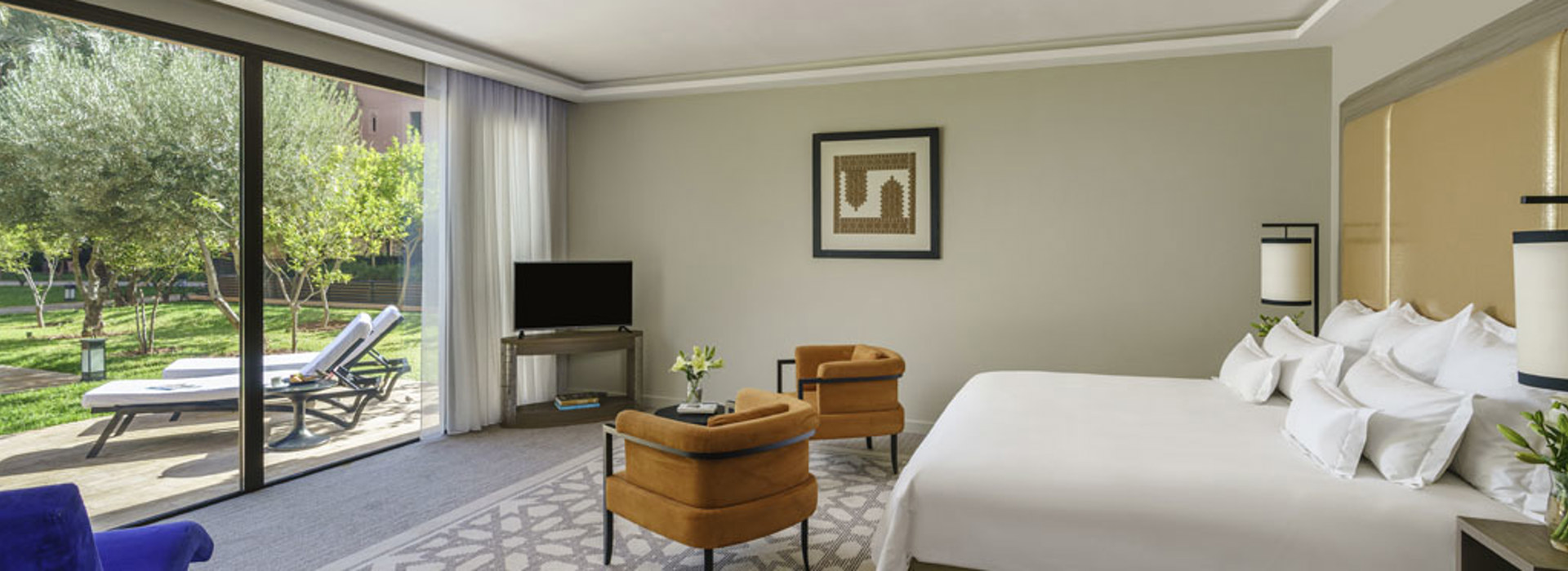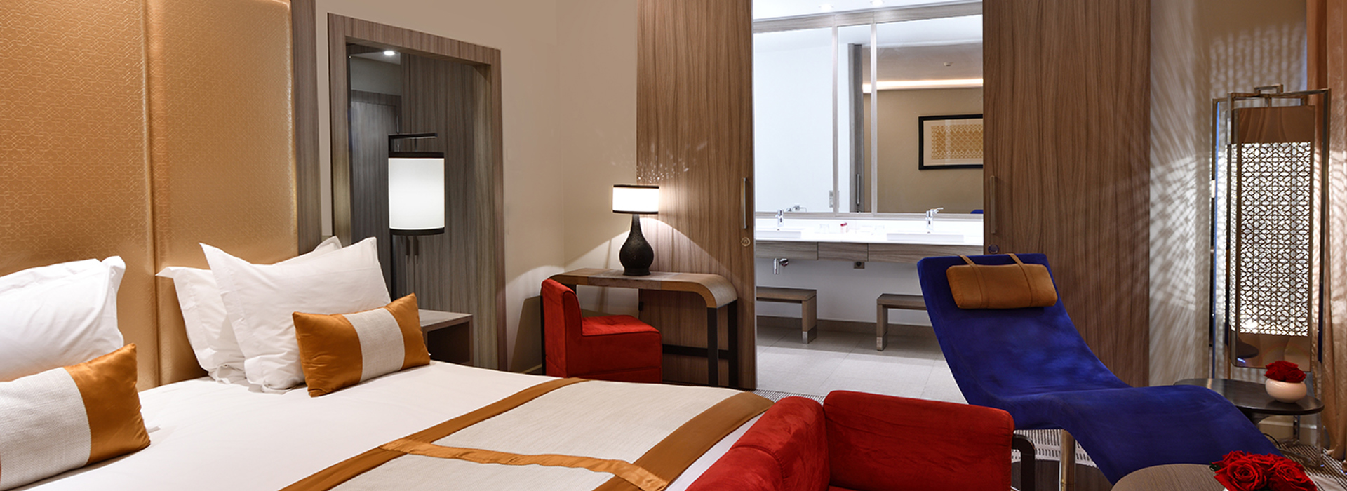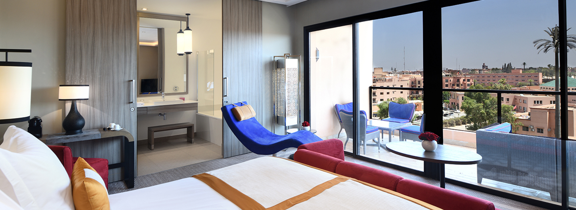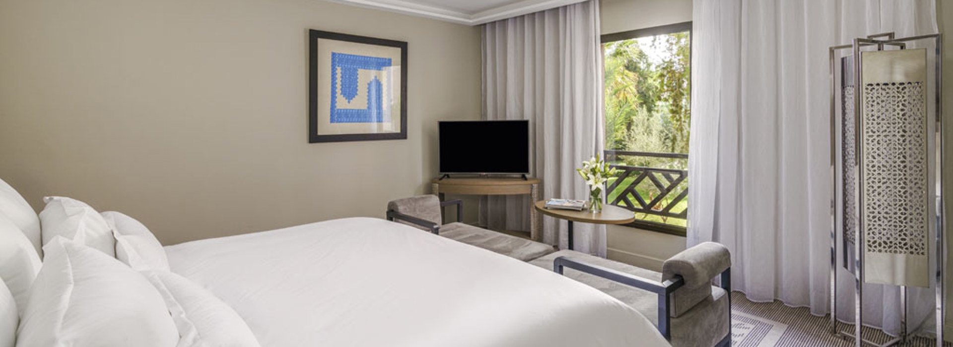 503 Zimmer und Suiten verteilen sich auf verschiedene Gebäude, sind modern ausgestattet und mit marokkanischen Akzenten dekoriert. Alle verfügen über Bad/Dusche, Klimaanlage, Kaffee-/Teezubereitung, Safe, gratis WiFi, Minibar (Füllung nach Wunsch) und 42-Zoll-LCD/HD-SatTV.