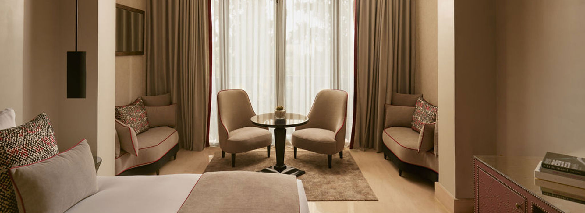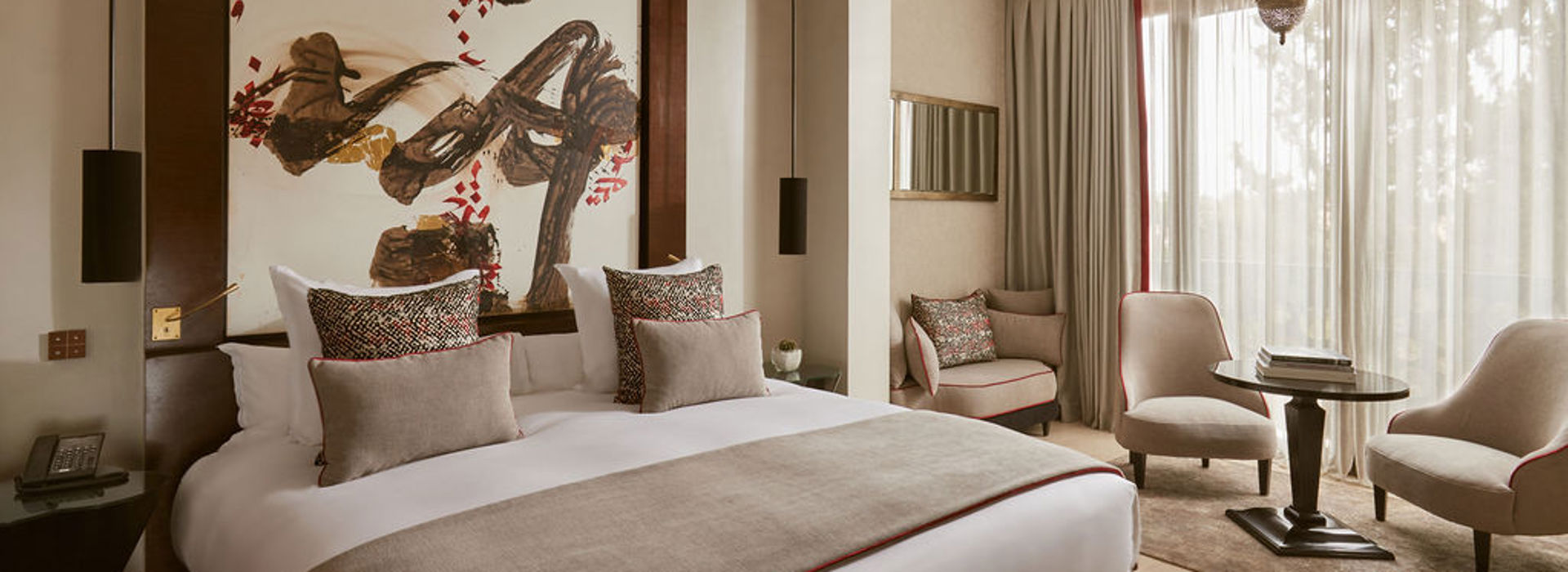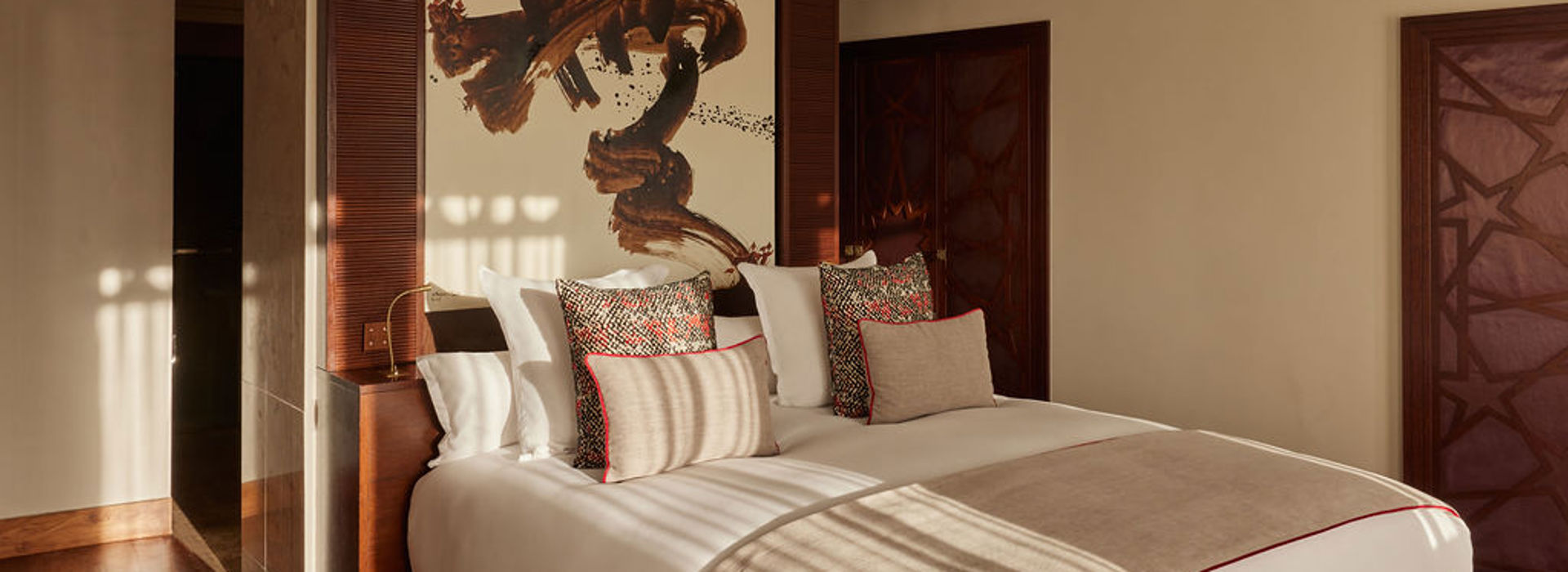 Die 71 geräumigen Suiten (ab 46 m2), die stilvoll mit einer subtilen Verschmelzung von marokkanischer Handwerkskunst und japanischen zeitgenössischen Akzenten gestaltet sind, verfügen über jeden Komfort wie Regendusche, Smart TV, WiFi, Minibar, Safe, Nespresso Kaffee- und Teemaschine sowie Zugang zum Rooftop Pool.
