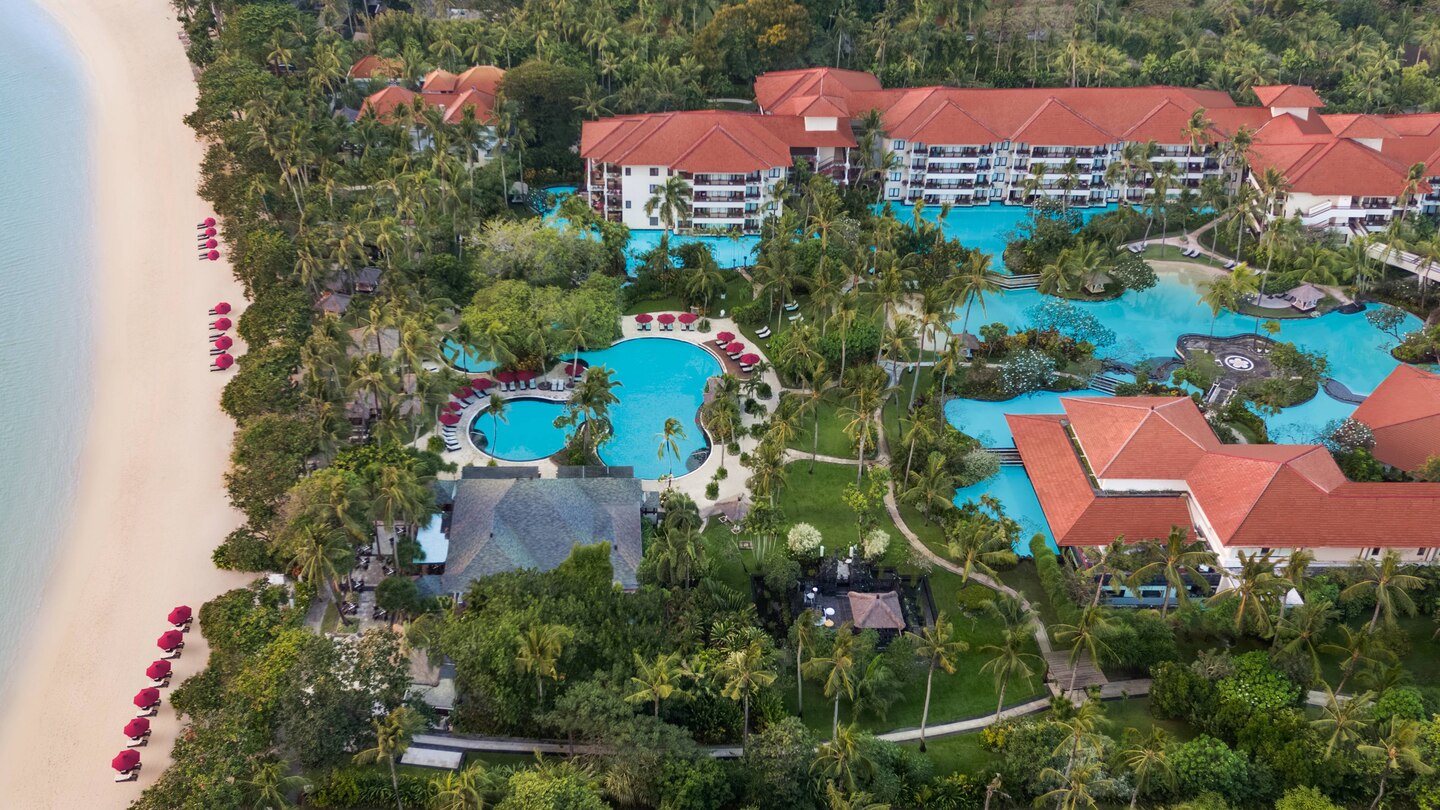 287 Zimmer und Suiten sind geschmackvoll, modern eingerichtet und mit balinesischen Elementen dekoriert. Alle verfügen über Bad/Dusche, Minibar, Klimaanlage, Sat-TV, DVD Player, Internetanschluss, WiFi (gratis) und Balkon wahlweise mit Sicht in den Garten oder auf die Lagune.