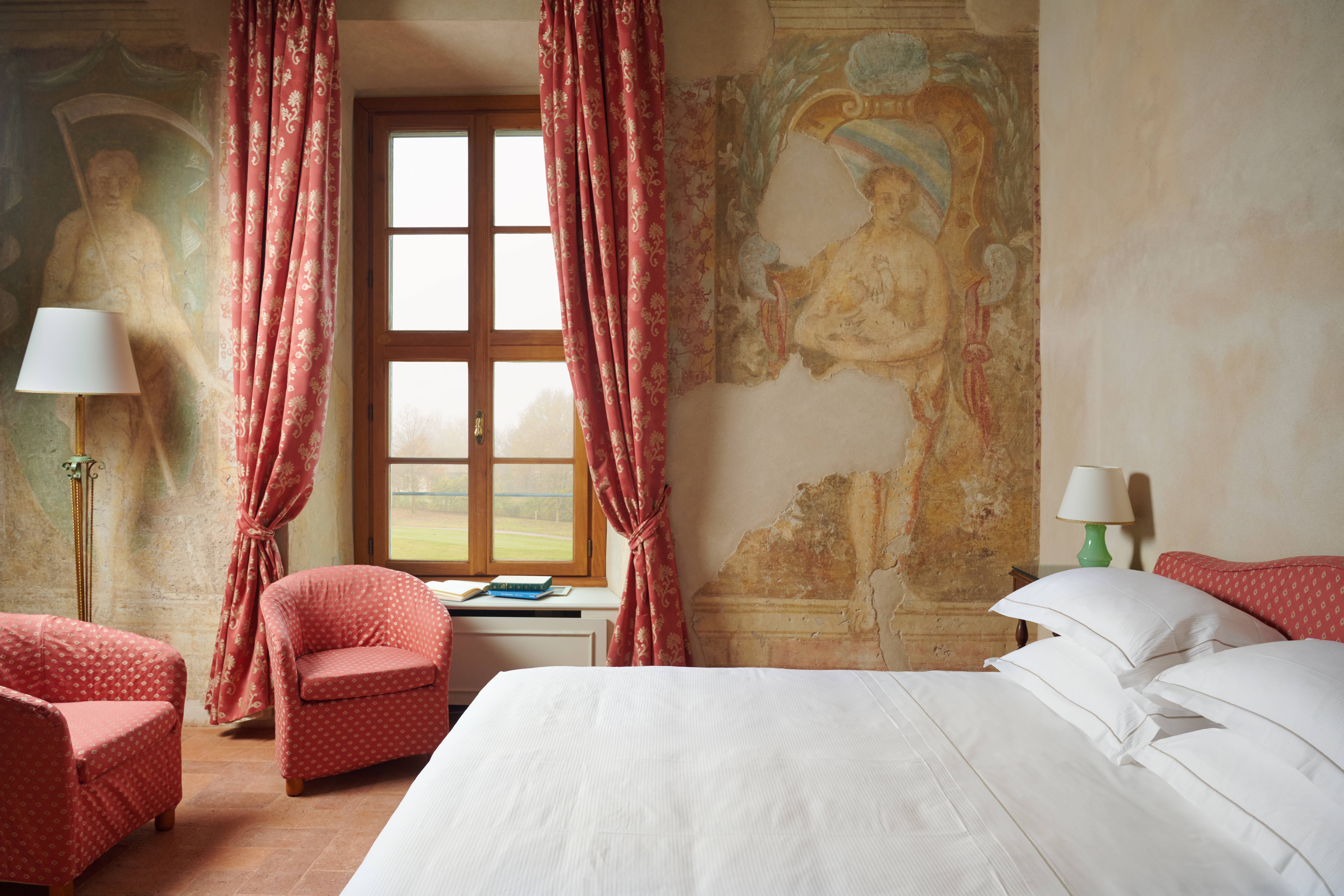 Die 78 Zimmer und Suiten sind geschmackvoll im schicken Landhausstil, teils mit antiken Fresken und/oder Holzdecken, eingerichtet und verfügen über jeglichen Komfort wie Bad/Dusche, Smart TV, WiFi, Minibar und Klimaanlage.