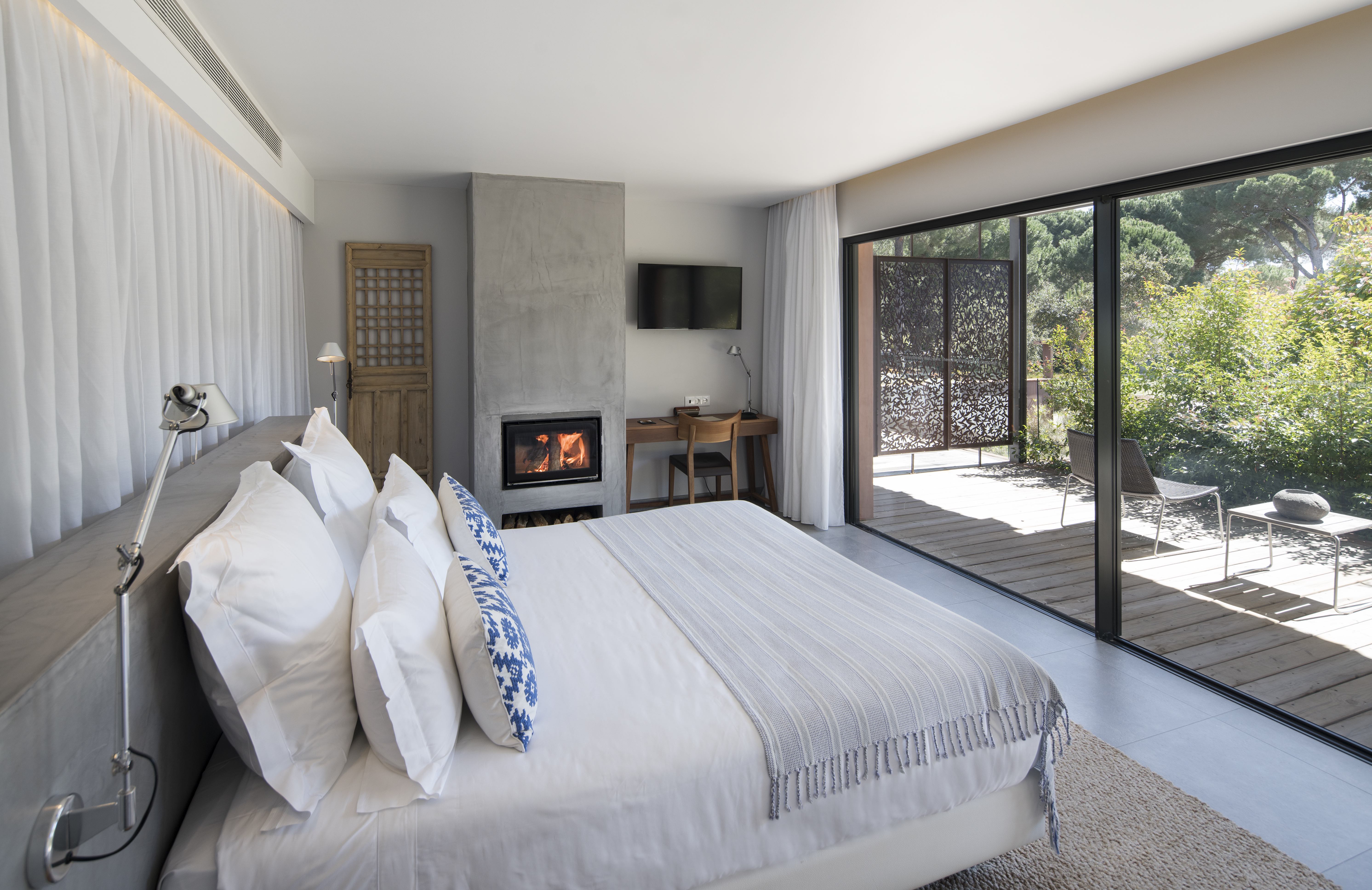 Die Zimmer, Suiten und Villen sind auf mehrere Gebäude verteilt, was die Intimität des Hotels verstärkt. Dies sind das Owner's House (adults only), die Gäste-Suiten, die Bio-Pool-Suiten und mehrere Villen mit 2, 3, 4 und 5 Schlafzimmern im Cabana-Stil, die alle über einen privaten Pool, einen Kamin und Terrassen verfügen. Mit ihren raumhohen Fenstern und dem weissen Minimalismus der Einrichtung sind die Zimmer sehr hell und luftig. Kunstwerke und die Terrasse aus Holz setzen warme Akzente. In allen Kategorien gehört die Klimaanlage, TV, High speed Internet, Minibar, 24h Rezeption, gratis Parkplatz und der Ladeplatz für Elektrofahrzeuge zur Grundaustattung.