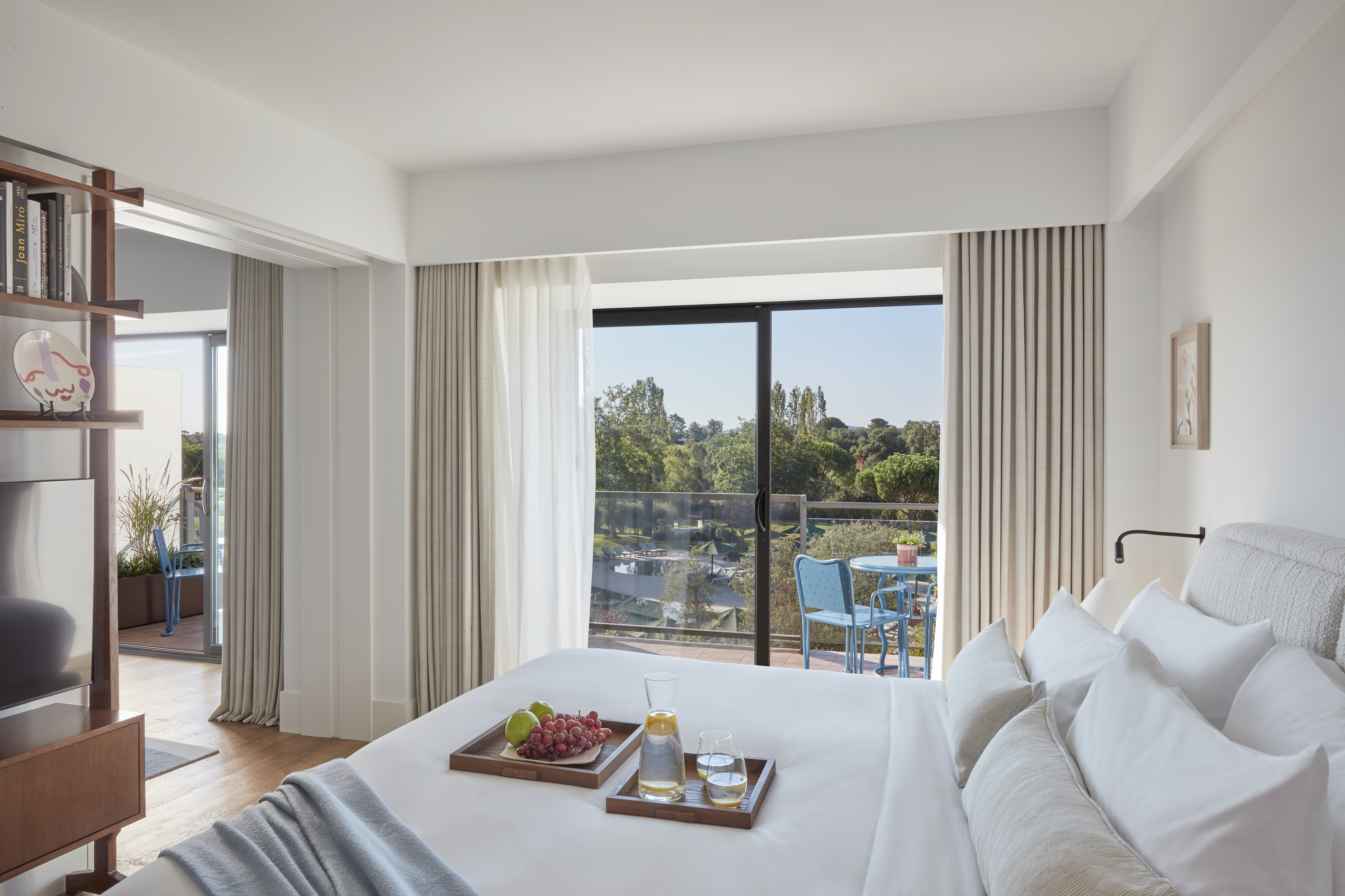 Superior Deluxe Zimmer zusätzlich mit Balkon und Sicht in den Garten, auf den Golfplatz oder zum Pool.