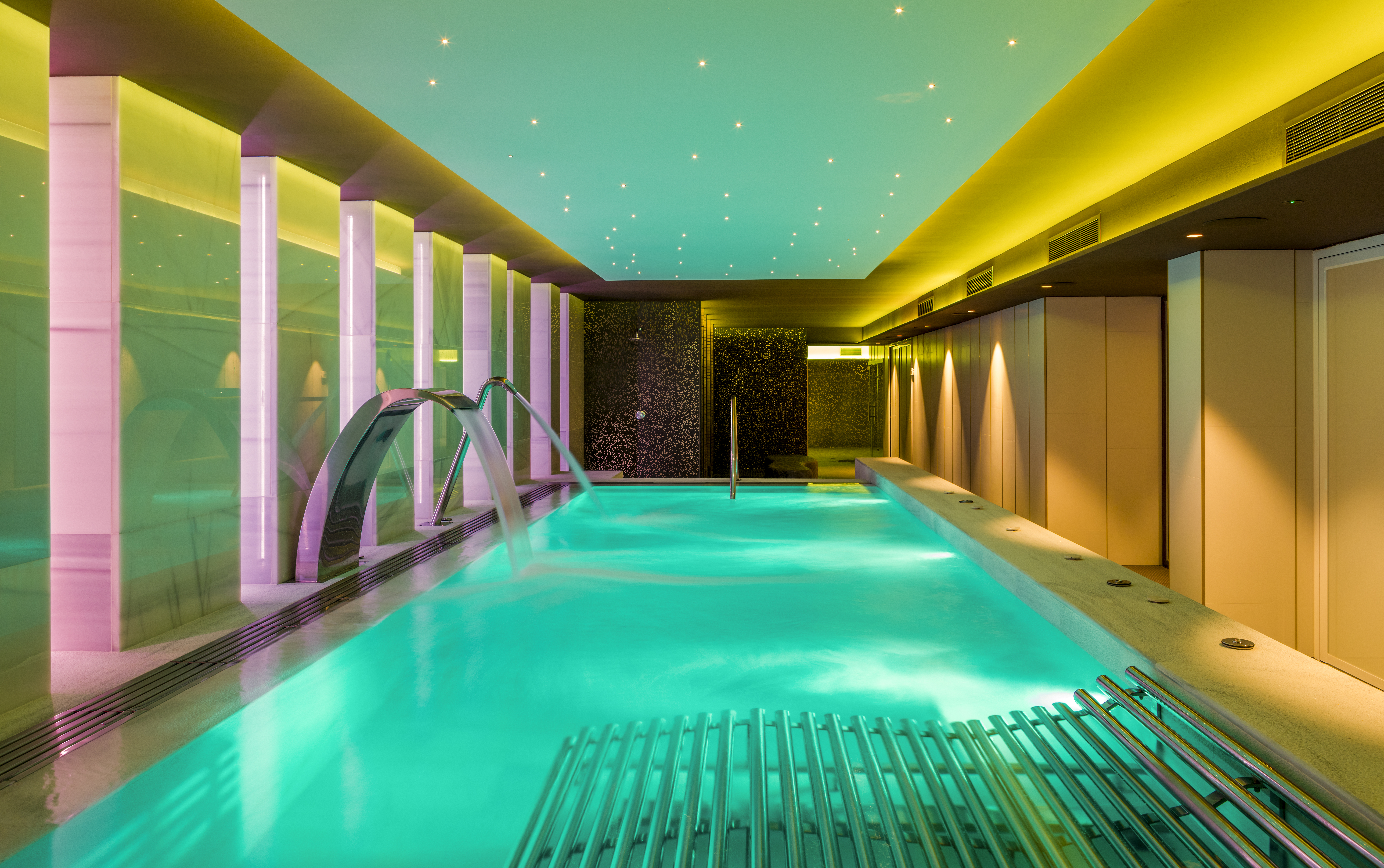 Ein Restaurant, Main Bar, Sky Bar, Dachterrasse mit Outdoor Pool und Meerblick, ein weiterer Outdoor Pool, Wassergymnastik, Yoga, Pilates, tagsüber Aktivitäten, Abendunterhaltung. Spa mit geheiztem Indoor Pool und Hydrojets, Sauna, Dampfbad, Erlebnisduschen, verschiedene Massagen und Behandlungen. Fitnessbereich, Billard.
