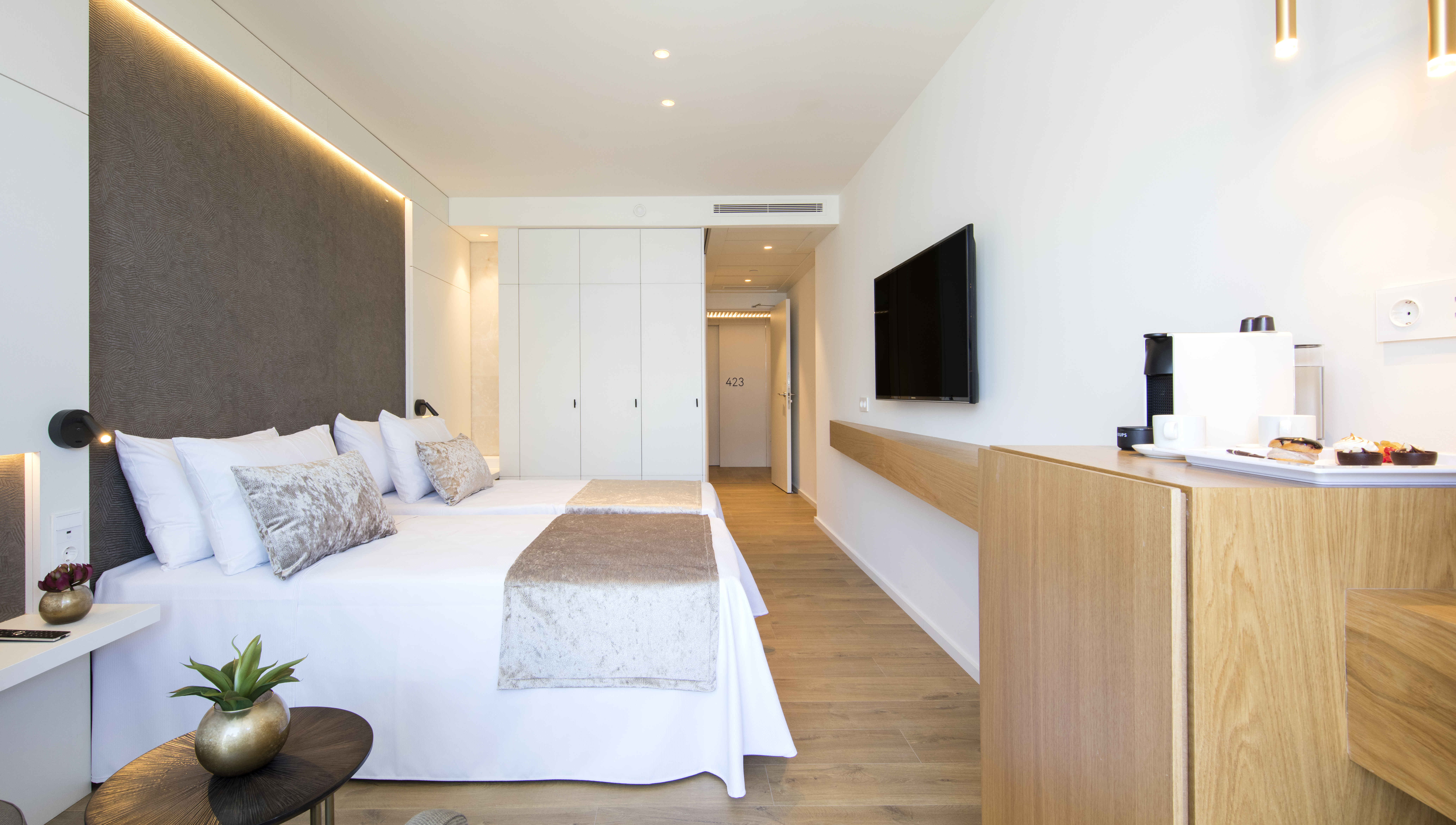 Die 163 Zimmer (ab 20 m2) sind geschmackvoll eingerichtet und verfügen über Bad mit Dusche, Smart-TV, Klimaanlage im Sommer, WiFi, Safe.