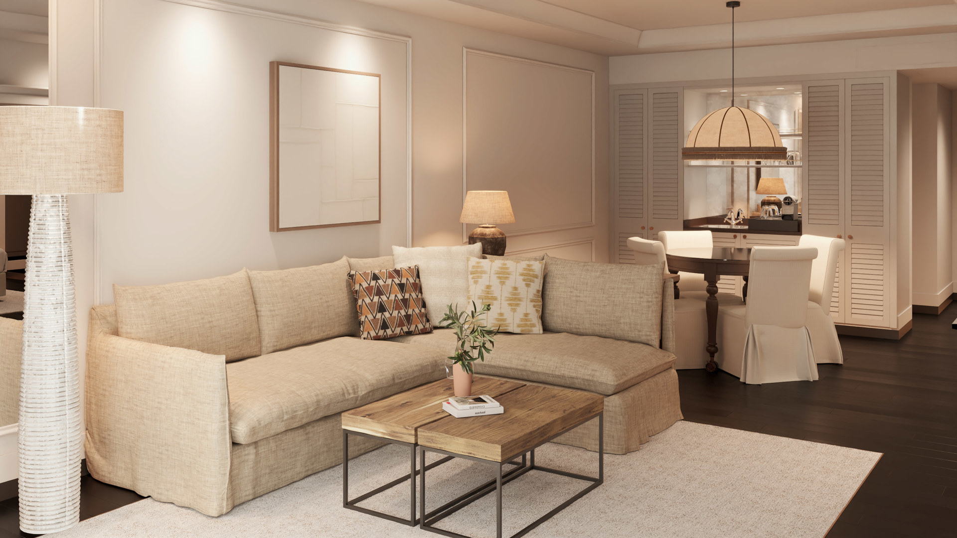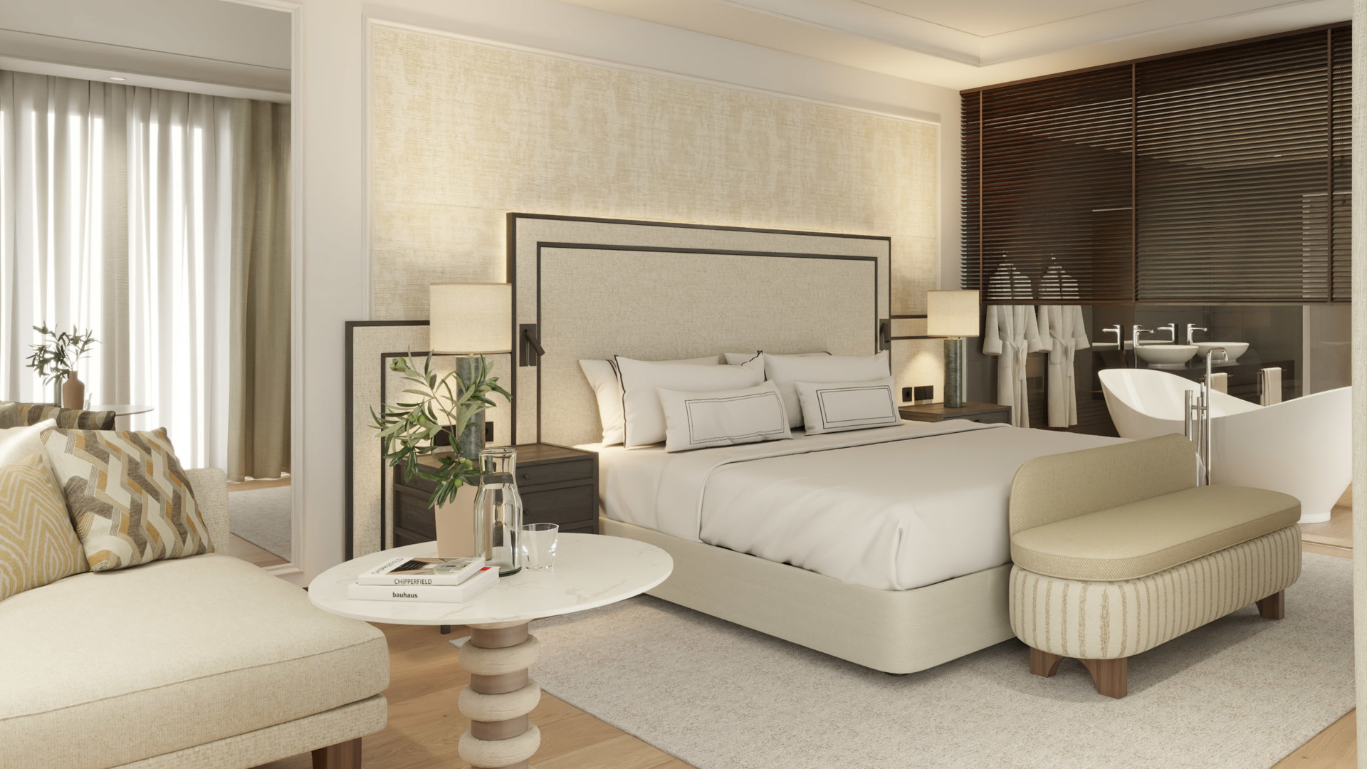 Die Zimmer und Suiten präsentieren sich als moderne, ruhige Wohlfühloasen mit einem warmen, natürlichen Farbkonzept aus sanften Beigetönen, hellen Holzelementen, feinen Leinenstoffen und dezenten Mustern. Geschmackvolle Accessoires und hochwertige Materialien erzeugen ein elegantes, zugleich entspanntes Ambiente. Zur Ausstattung gehören kostenloses WiFi, Flachbildfernseher, Minibar, hochwertige Pflegeprodukte, Klimaanlage, Tee- und Kaffeemaschine, Haartrockner, Bademäntel, eine Auswahl an Kopfkissen sowie ein Bügelset.