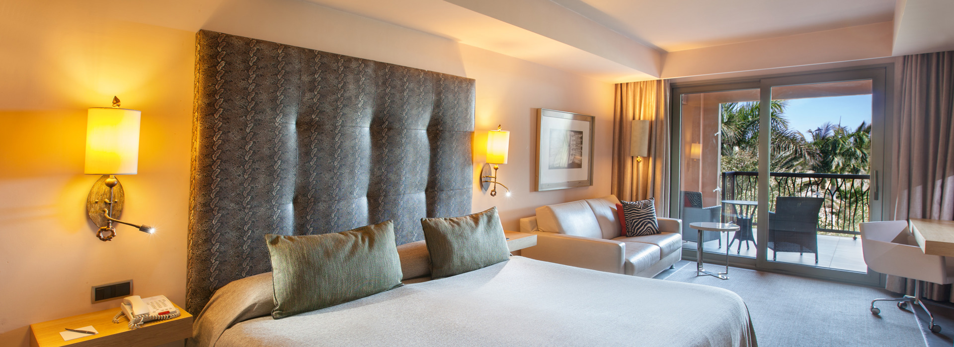 Die Doppelzimmer Standard (34 m2) verfügen zwei Einzelbetten oder ein Doppelbett und eine gemütliche Sitzecke mit einem Schlafsofa. Das Badezimmer ist mit Bad oder Dusche ausgestattet. Die Standardzimmer sind buchbar mit Bergsicht oder Garten-/Poolsicht. Die Doppelzimmer Superior (40 m2) befinden sich auf der oberen Etage des Hotels und bieten einen grösseren Balkon mit einer bequemen Hängematte. Die Doppelzimmer Deluxe Pool (34 m2) bieten zusätzlich einen privaten Pool. Die Junior Suiten (56 m2) bieten zusätzlich ein separates Wohnzimmer mit Schlafsofa und ein Ankleidezimmer. Die Senior Suiten (70 m2) sind wie die Junior Suiten eingerichtet, jedoch geräumiger. Das Highlight der Superior Suiten (60 m2) ist der private Jacuzzi auf der Terrasse oder dem Balkon. Die Royal Suiten (220 m2) sind die grössten Zimmer des Hotels und unterscheidet sich vor allem durch die privilegierte Lage mit dem spektakulären Blick auf Meloneras. Sie bieten ein grosses separates Wohnzimmer und einen Balkon mit komfortablen Hängematten.