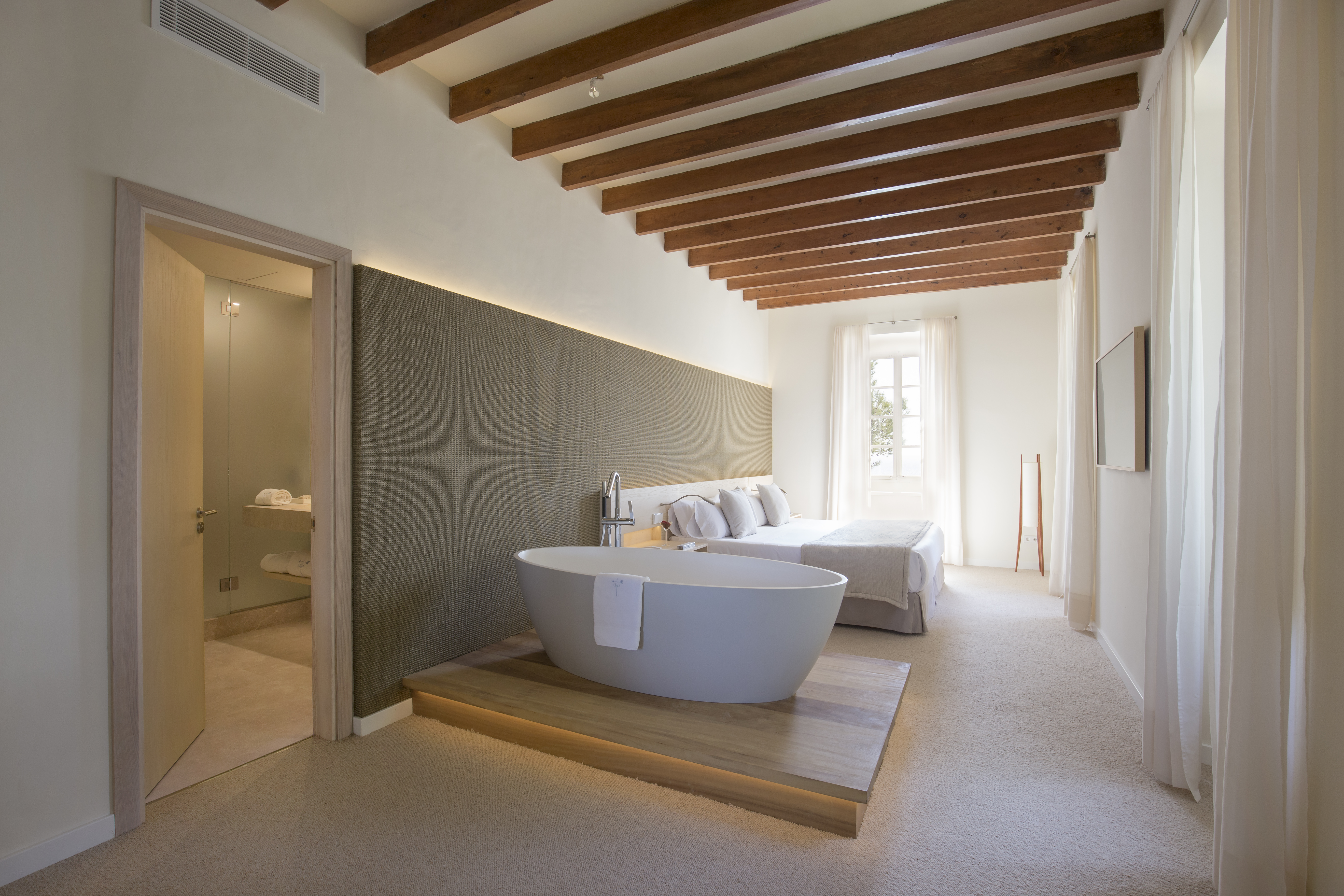 Das Hotel verfügt über 26 moderne, individuell eingerichtete Zimmer und Suiten, die sich in Grösse und Design unterscheiden. Die Zimmer sind in 6 verschiedene Typen aufgeteilt: Doppelzimmer mit Meerblick oder Blick auf die umliegenden Hügel der Sierra de Levante – teils mit eigener Terrasse. Doppelzimmer mit Terrasse/Chillout Bereich. Junior Suiten mit Meerblick, eigener Terrasse oder privatem Chillout Bereich. Superior Suiten mit Meerblick, eigener Terrasse oder privatem Chillout Bereich. Luxus-Suiten mit Meerblick, ausgestattet mit einem Hydromassage-Pool im Aussenbereich. Grand Suite mit eigenem Garten, privatem Pool, atemberaubendem Meerblick und absoluter Privatsphäre. Alle Zimmer und Suiten sind mit jeglichem Komfort ausgestattet wie Minibar, Klimaanlage, Telefon, Smart TV, Bademäntel, Poolhandtücher, Haarfön, WiFi, Safe.