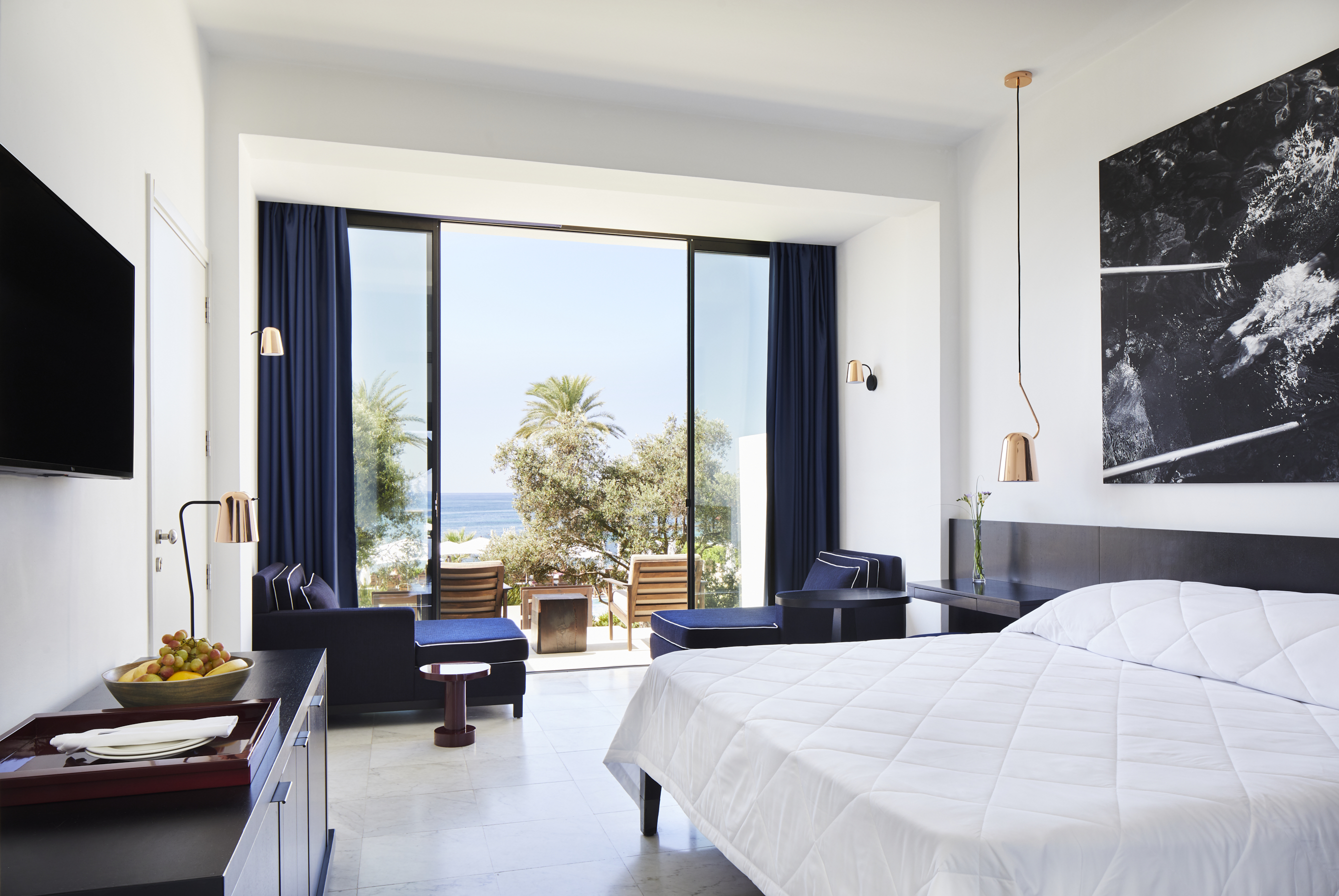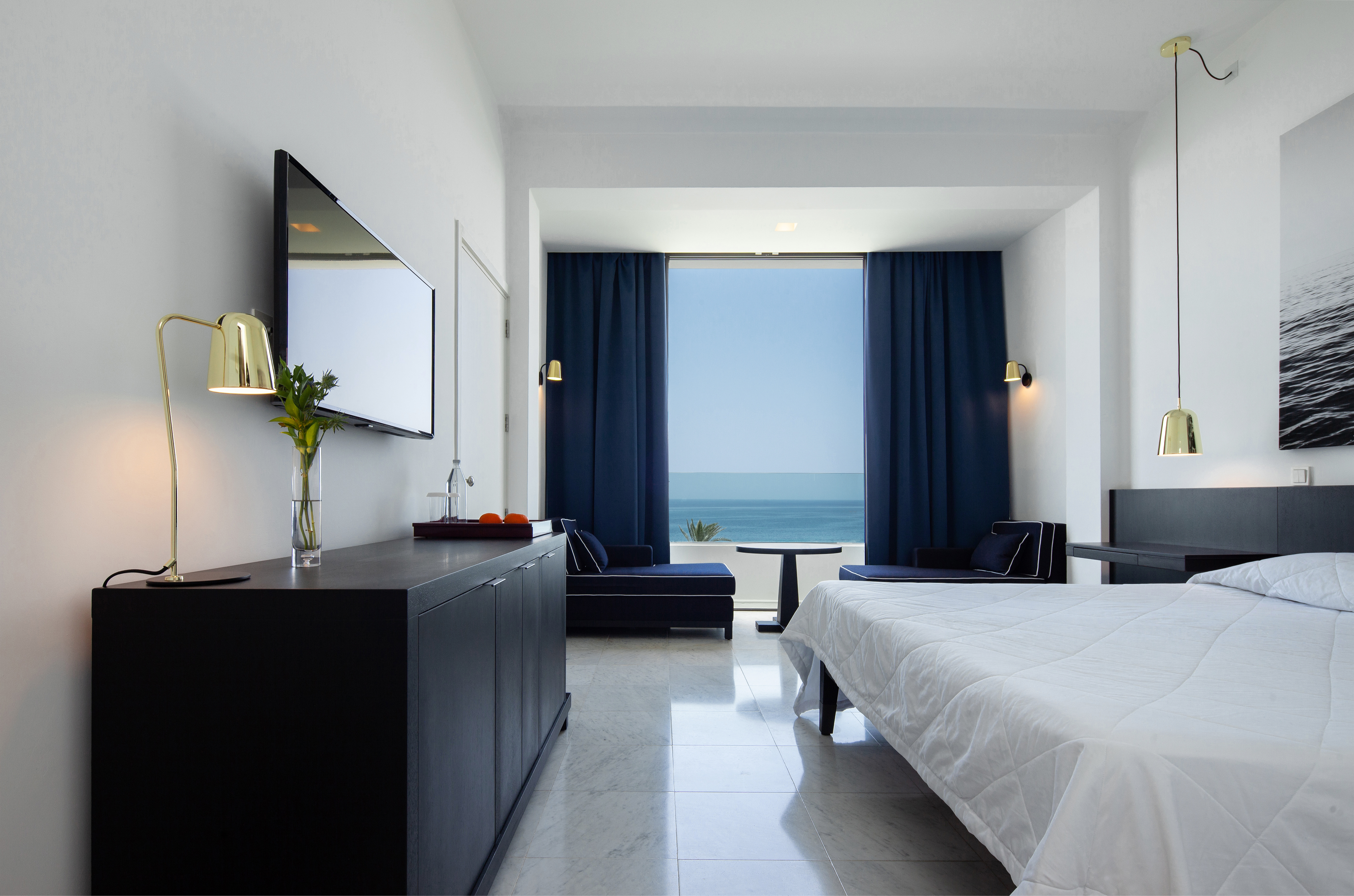 Die Zimmer des Almyra Hotels verbinden zeitgenössischen Stil mit höchstem Komfort und modernsten Annehmlichkeiten. Jedes Zimmer ist individuell eingerichtet und strahlt durch kühle, helle Stoffe in Naturtönen eine entspannte, elegante Atmosphäre aus. Gäste haben die Wahl zwischen Zimmern mit Garten- oder Meerblick, die entweder über eine private Terrasse, einen Balkon oder raumhohe Schiebefenster verfügen.