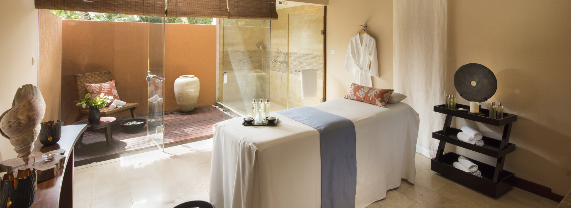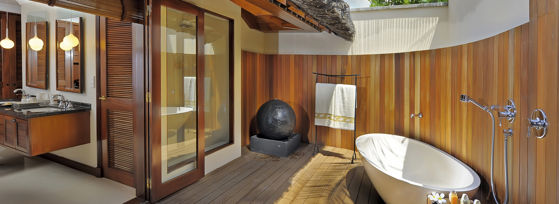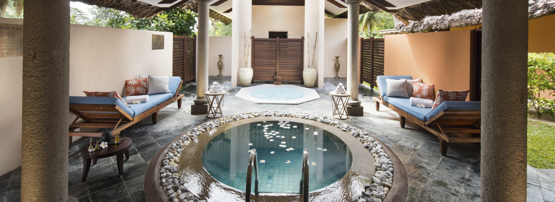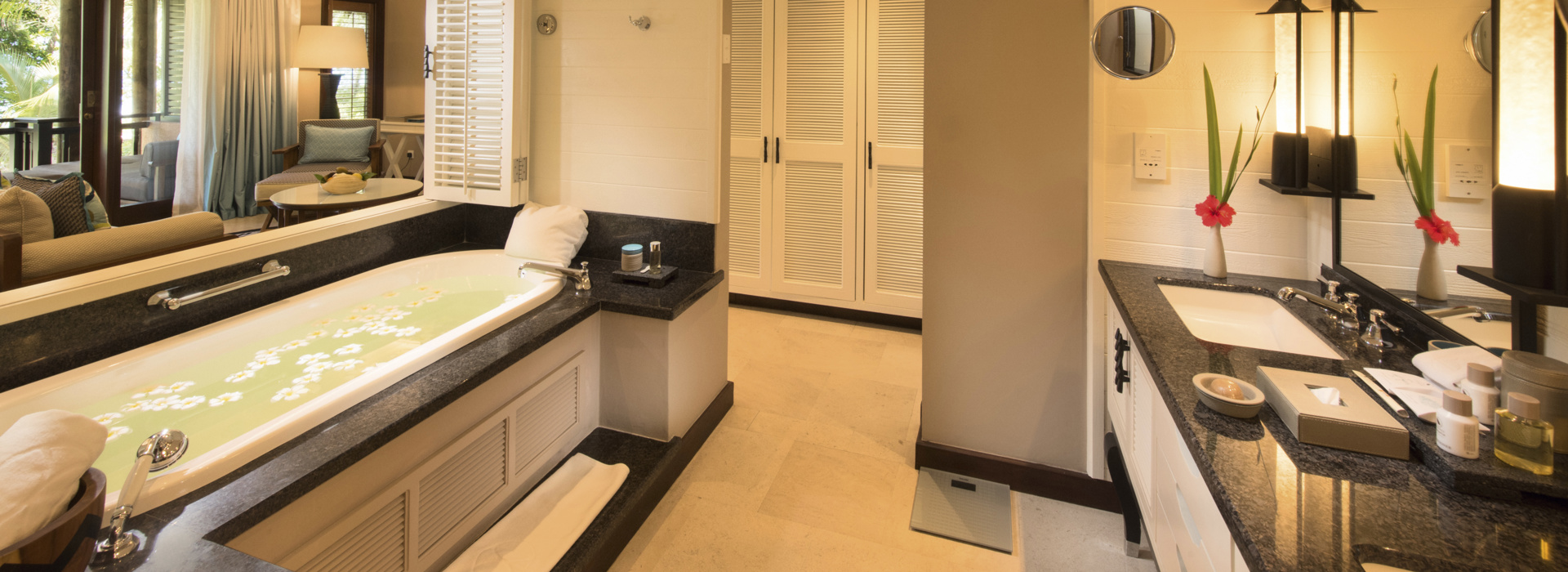 Die 96 eleganten Suiten in zweistöckigen Gebäuden im tropischen Garten entlang zweier Traumstrände gelegen und nur wenige Meter vom Meer entfernt sind sehr geschmackvoll und elegant ausgestattet. Sie verfügen über Bad/Dusche, Minibar, Klimaanlage, Safe, Kaffee-/Teezubereitung, Nespresso Kaffeemaschine, LCD SatTV, DVD/CD Palyer, Apple Mac Mini Entertainmentsystem, gratis WiFi, Balkon oder Terrasse. Junior Suiten 52 m2, Senior Suiten 115 m2, gleiche Einrichtung jedoch zusätzlich mit Nespresso Kaffeemaschine und separatem Wohnraum. Zusätzlich verfügbar 8 Villen mit privatem Pool, 1 oder 2 Schlafzimmern, jeweils mit grosszügiger Lounge und Essbereich sowie Butler Service.