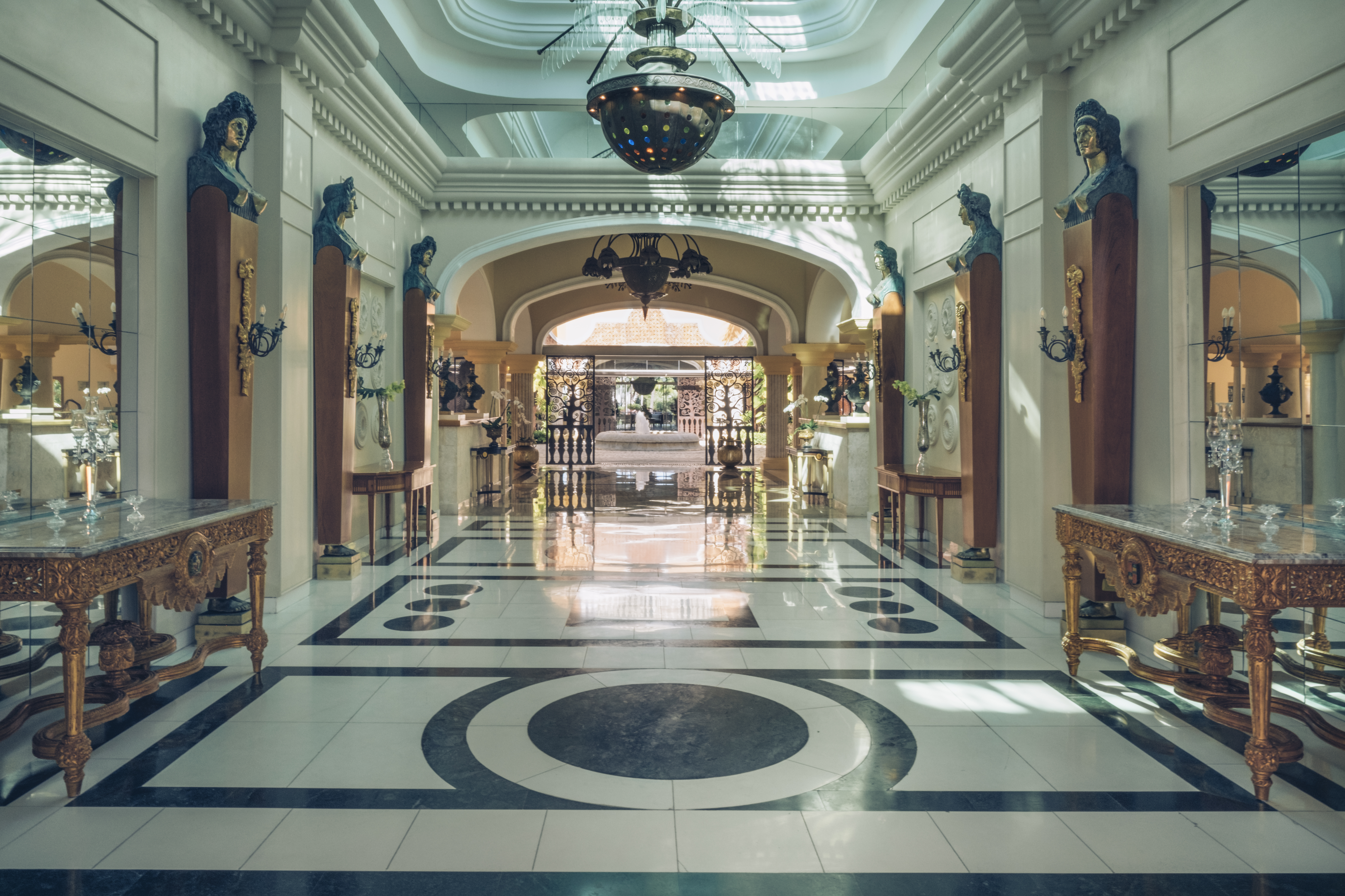 Die Anlage beeindruckt mit einer herausragenden Architektur im griechisch-römischen Stil, geprägt von weissen Säulen, eleganten Fassaden und kunstvollen Details. Zahlreiche Kunstwerke und eine weitläufige Gartenanlage mit einheimischer Flora und Fauna verleihen dem Resort ein exklusives Flair. Drei Pools fügen sich in die Anlage ein, darunter zwei Lagunenpools mit kleinen Inseln. Ein besonderes Highlight ist das massstabsgetreu nachgebaute Segelschiff, das im Pool verankert ist und spektakuläre Ausblicke auf das Meer bietet. Ergänzt wird die Infrastruktur durch eine hoteleigene Einkaufspassage.