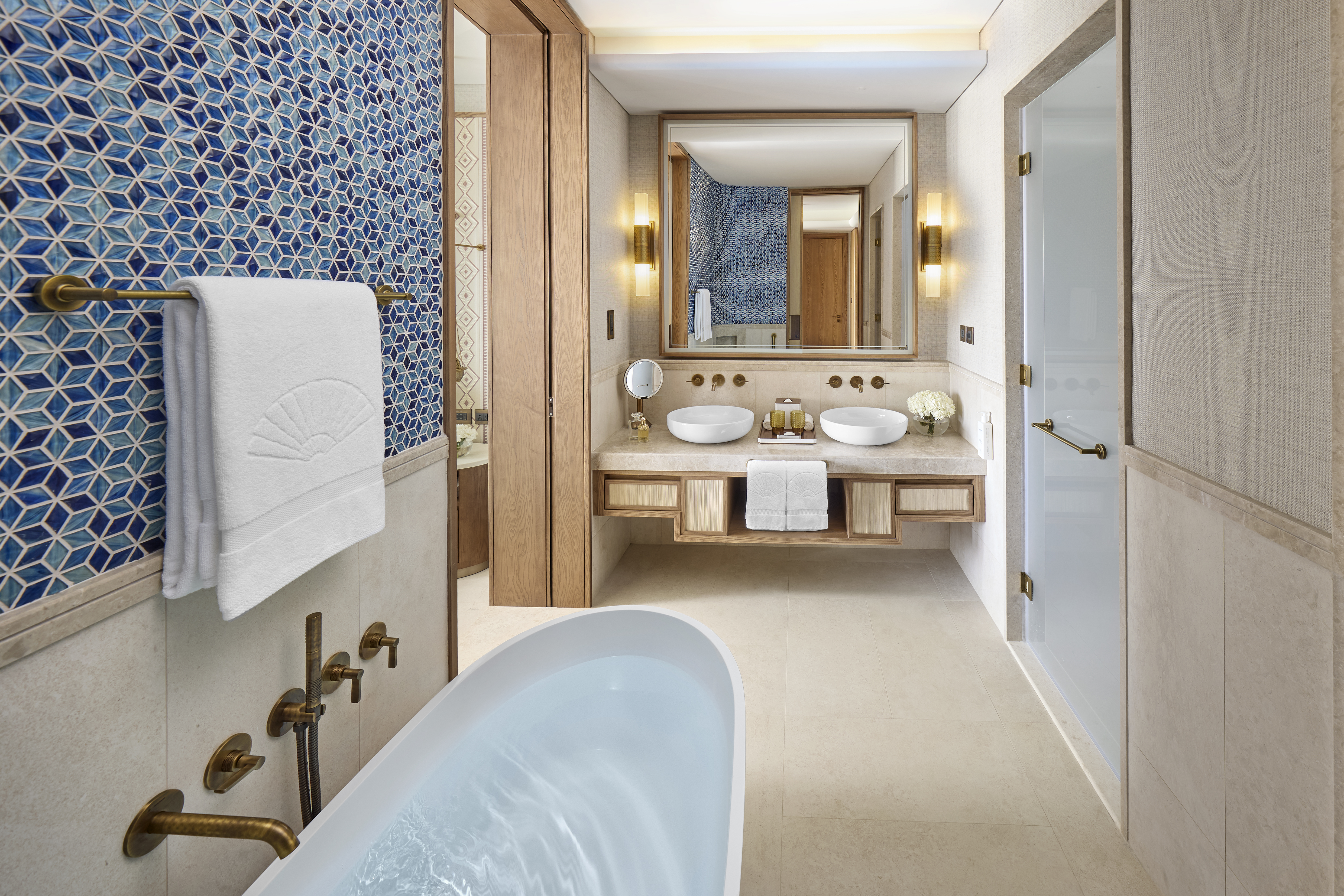 Die Zimmer und Suiten bringen Wärme, Komfort und Raffinesse an die Küste von Muscat und bieten einige der faszinierendsten Ausblicke auf den Golf von Oman und das majestätische Hajar-Gebirge. Die geräumigen Gästezimmer sind in einer dezenten Farbpalette gehalten und mit von Omani inspirierter Kunst und Möbeln ausgestattet. Die eleganten Marmorbäder verfügen über einen doppelten Waschtisch und eine separate Badewanne und Dusche. Zu den weiteren Annehmlichkeiten gehören ein Balkon oder eine Terrasse mit Meer- oder Bergblick, ein Kissen Menü, HD Smart TV und eine Nespresso Kaffeemaschine.