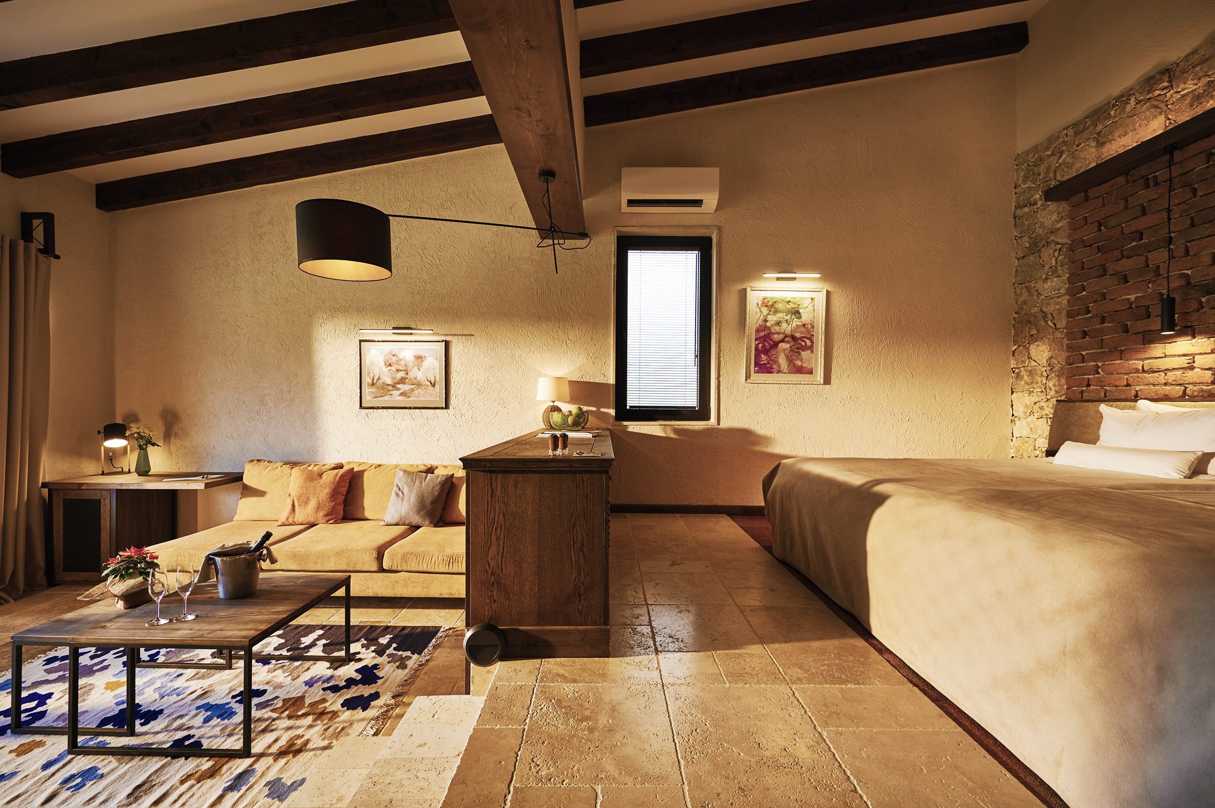 6 Villen, 7 Superior Junior Suiten und 9 Junior Suiten in den Grössen von 50 – 65 m2 bieten jeglichen Komfort an. Alle Villen & Suiten bieten ein komplettes luxuriöses Erlebnis mit unterschiedlichen Interieurs und Designs, grosser Terrasse, herrlichen Ausblicken und allen Annehmlichkeiten und Details erstklassiger Gastlichkeit. Die Villen sind ergänzt mit einem Kamin, im speziellen für die kalten Monate.