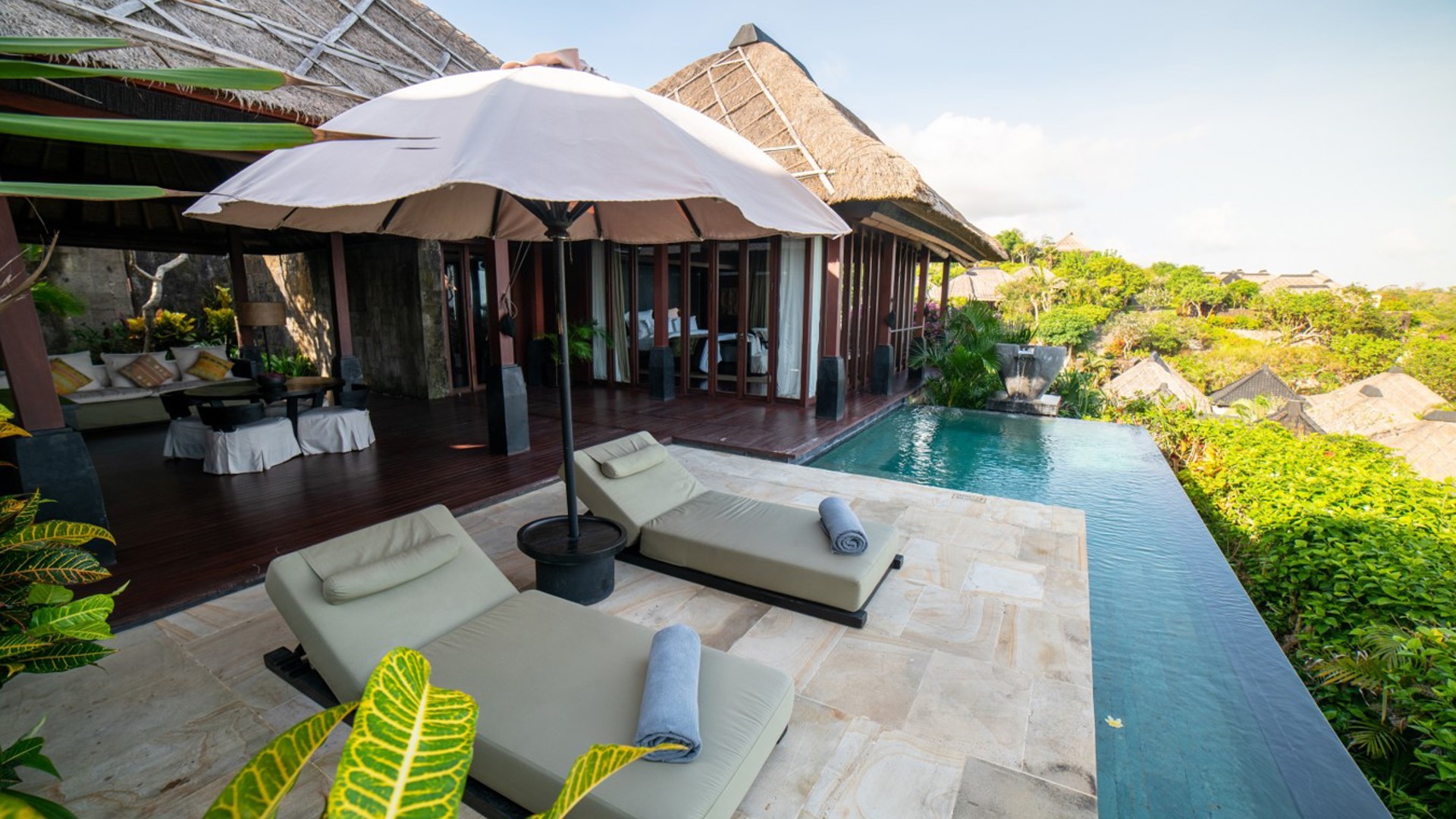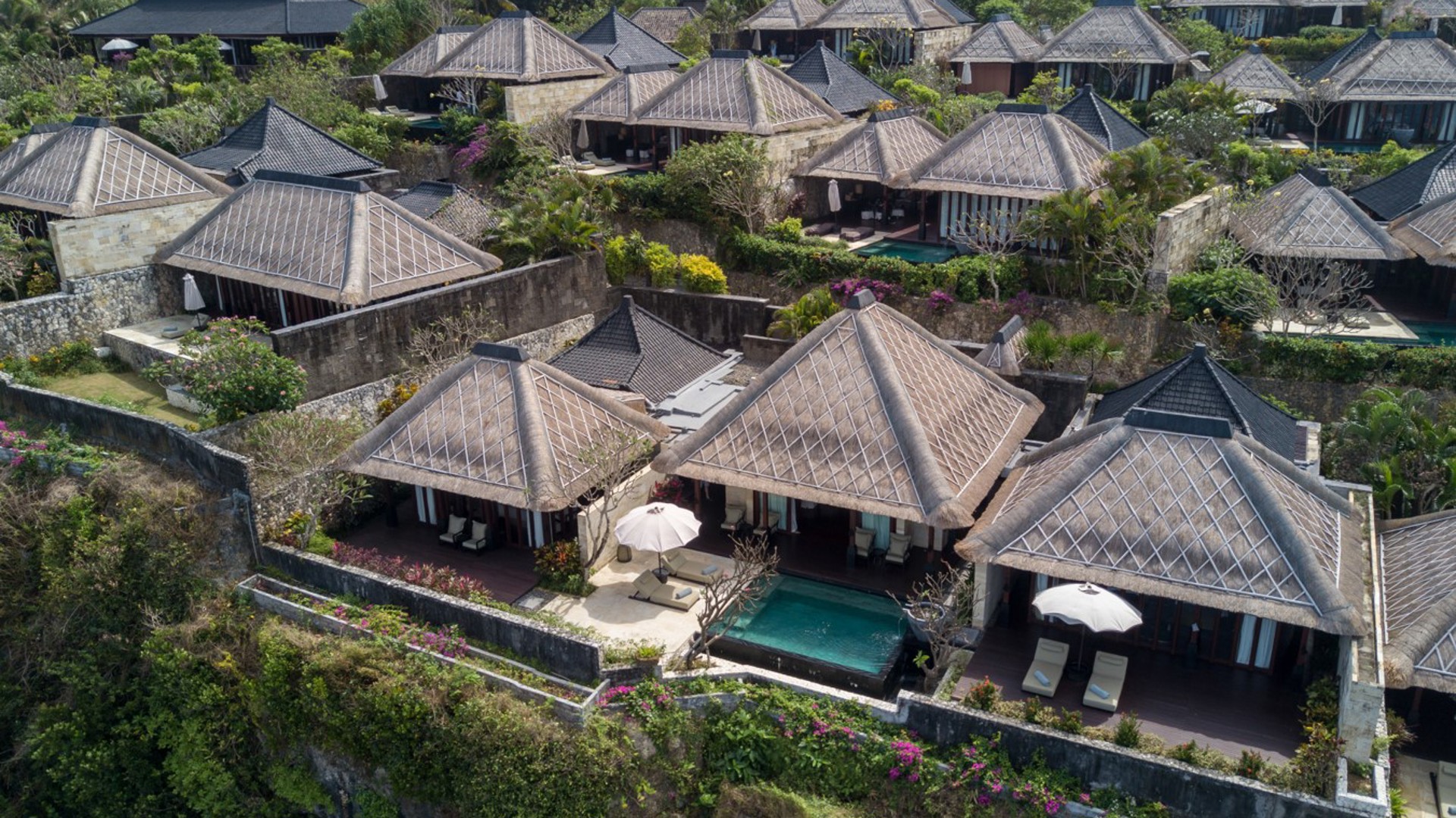 Total 59 Villen, aufgeteilt in 1- bis 2-Bedroom Villen, sowie 5 Mansions. Die Villen verfügen alle über direkte Meersicht, eigenen Pool und beginnen bei einer Grösse ab 300 m2 bis 1'300 m2, die Mansion von 1'700 m2 bis 4'400 m2. Jede Villa verfügt über viel Privatsphäre mit eigenem Garten. Die Villen sind im balinesischen Stil mit Strohdächern erstellt – die Innenarchitektur und Ausstattung, die keine Wünsche offen lässt, tragen ebenfalls die Handschrift balinesischer Kunst.