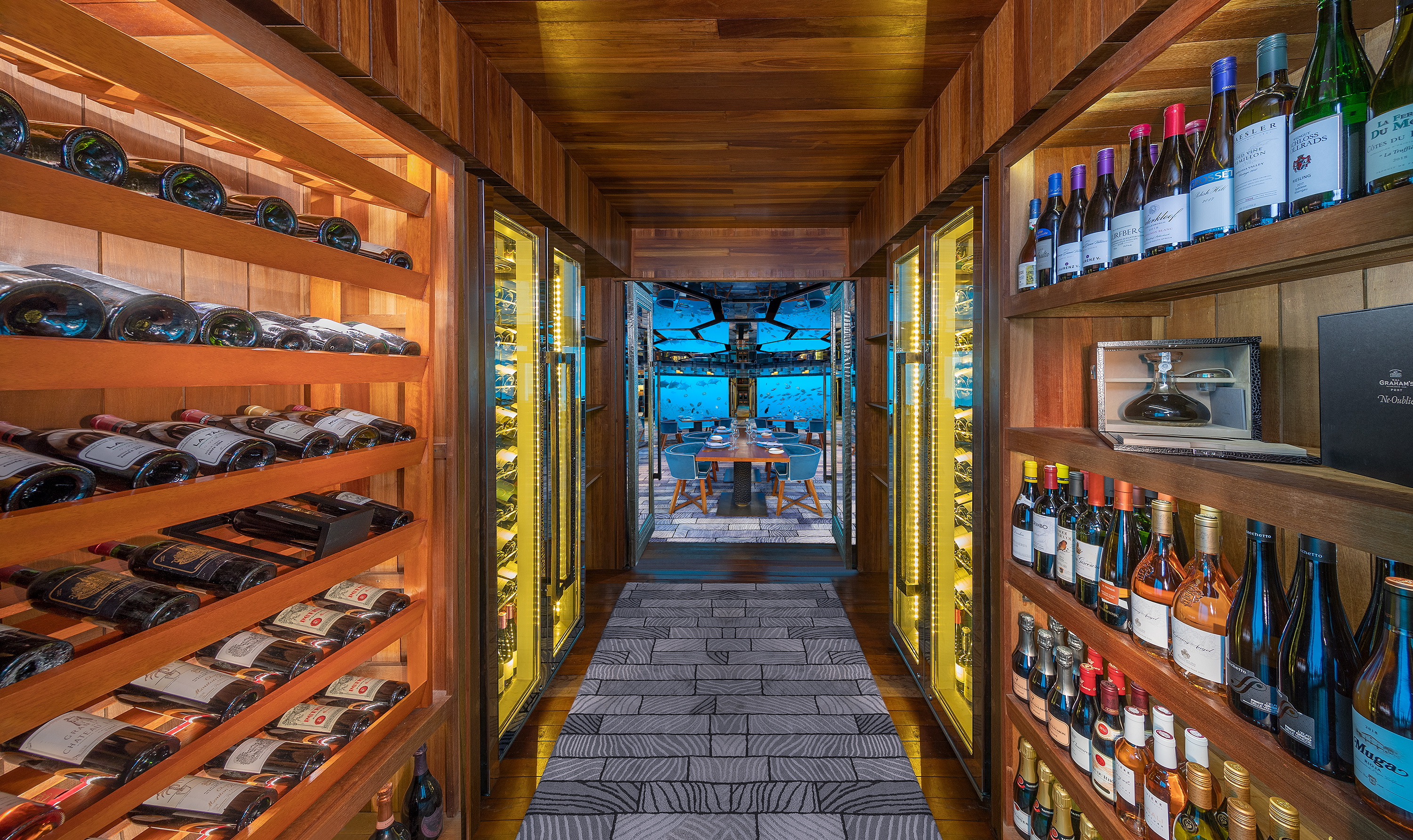 Fünf verschiedene Restaurants bieten Ihnen täglich gastronomische Höhenflüge an. Japanisch im FIRE, asiatisch im SPICE, Mediterran im MANZARU, International im PLATES oder Fine Dining unter Wasser im SEA, wo auch der grösste und beste Weinkeller der Malediven liegt. In Villa Dining sowie romantische Beach Dinner runden das vielfällige Angebot ab. An der Sky Bar geniessen Sie nebst fantastischen Drinks die schönsten Sonnenuntergänge mit dezenter Background Musik.