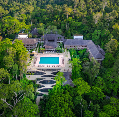 Luxuriöse Hotelanlage und Golfresort inmitten einer tropischen Vegetation.