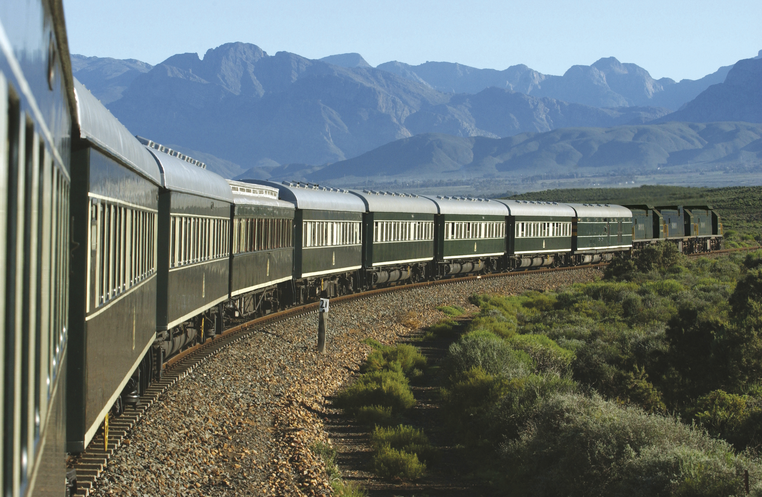 Der Rovos Rail durchquert verschiedene Klimazonen in Südafrika. Die Temparaturen reichen von gemässigt bis heiss, die Winter sind trocken und die Sommer feucht. Im Zug sorgen Klimaanlagen für angenehme Temparaturen das ganze Jahr.